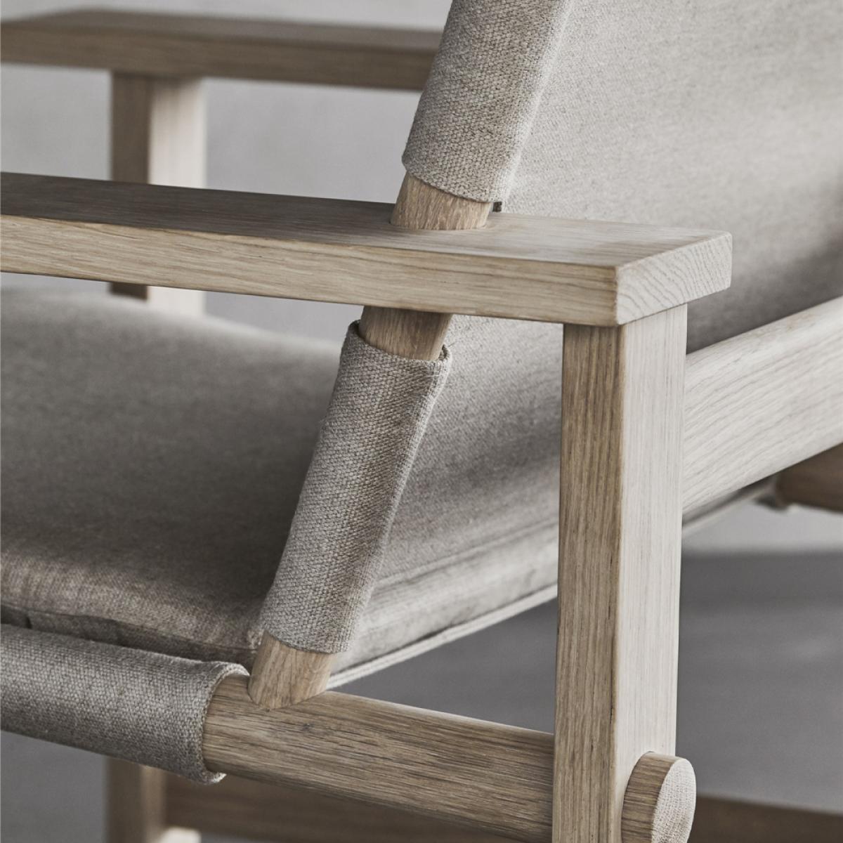 The Canvas Chair armchair from Fredericia Furniture is a timeless armchair designed by Børge Mogensen that exemplifies his focus on simple, functional and beautiful forms. Designed in 1970 as a reaction against ornate furniture, the Canvas Chair still feels modern and relevant today thanks to its natural aesthetic and honest materials. The armchair creates a strong presence in the home and offers elegant comfort, which can be enhanced with a matching canvas seat cushion. A piece that combines minimalist design with a warm and inviting character, perfect for living rooms or lounges.