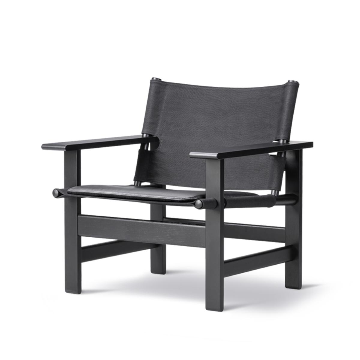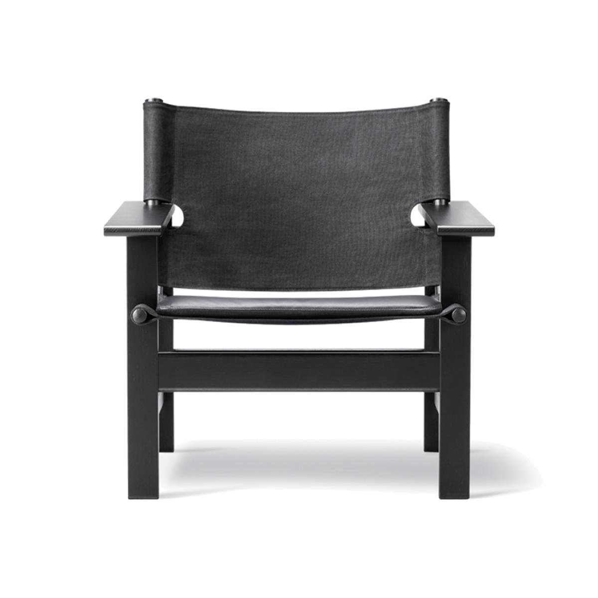Fredericia Furniture The Canvas Chair armchair Canvas black-black lacquered oak incl. black leather cushion