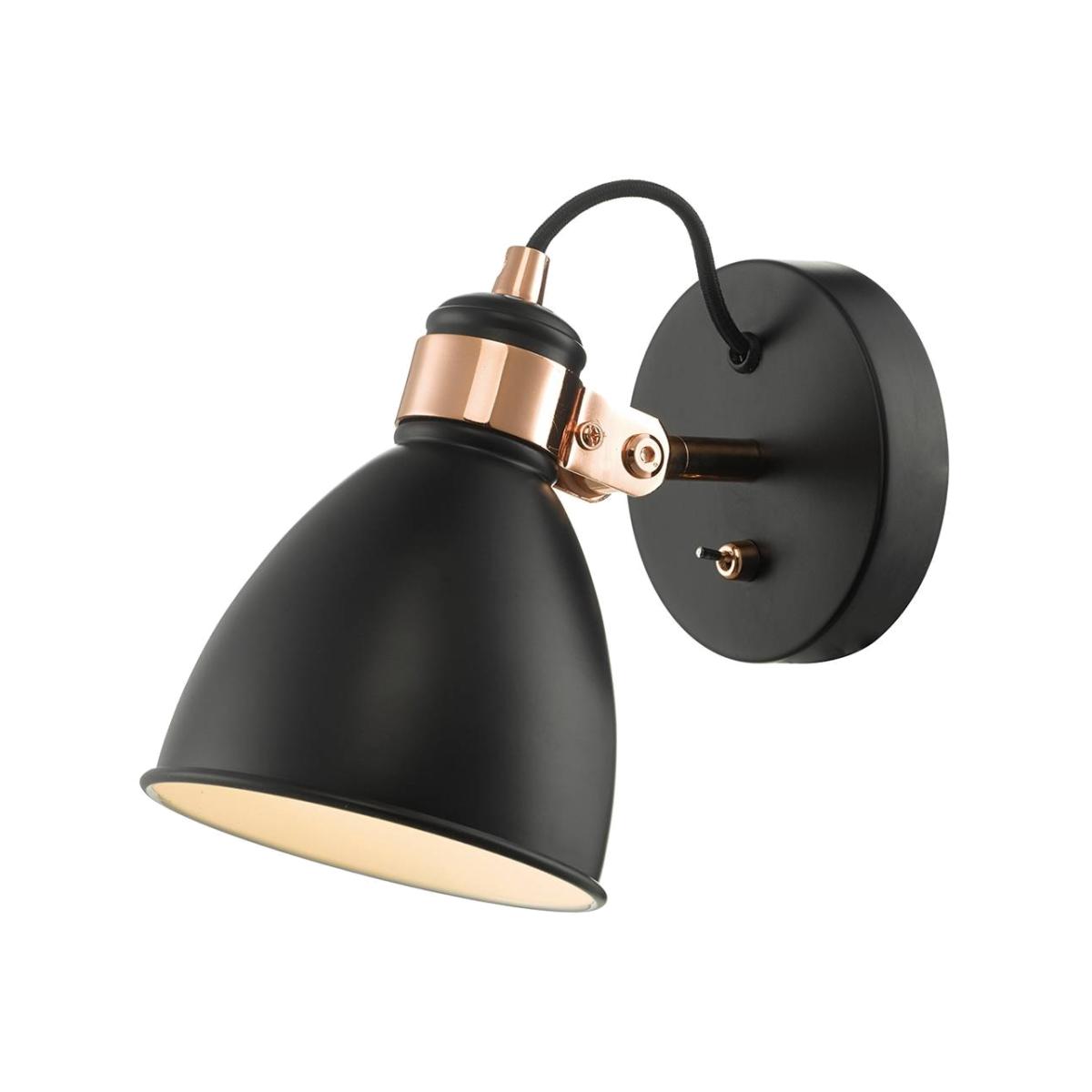 The Frederick Wall Light is the perfect addition to any home due to its space saving design. This light from Dar Lighting features a black finish on the base and head of the lamp, whilst copper detailing completes the nordic style look. The Frederick Wall Light is 180mm in height, 130mm in width and 240mm in length. It requires 1 x Golfball SES light bulb with a maximum wattage of 40w. Dar Product Code: FRE0722 The Frederick Wall Light is the perfect addition to any home due to its space saving design. This light from Dar Lighting features a black finish on the base and head of the lamp, whilst copper detailing completes the nordic style look. The Frederick Wall Light is 180mm in height, 130mm in width and 240mm in length. It requires 1 x Golfball SES light bulb with a maximum wattage of 40w. Dar Product Code: FRE0722