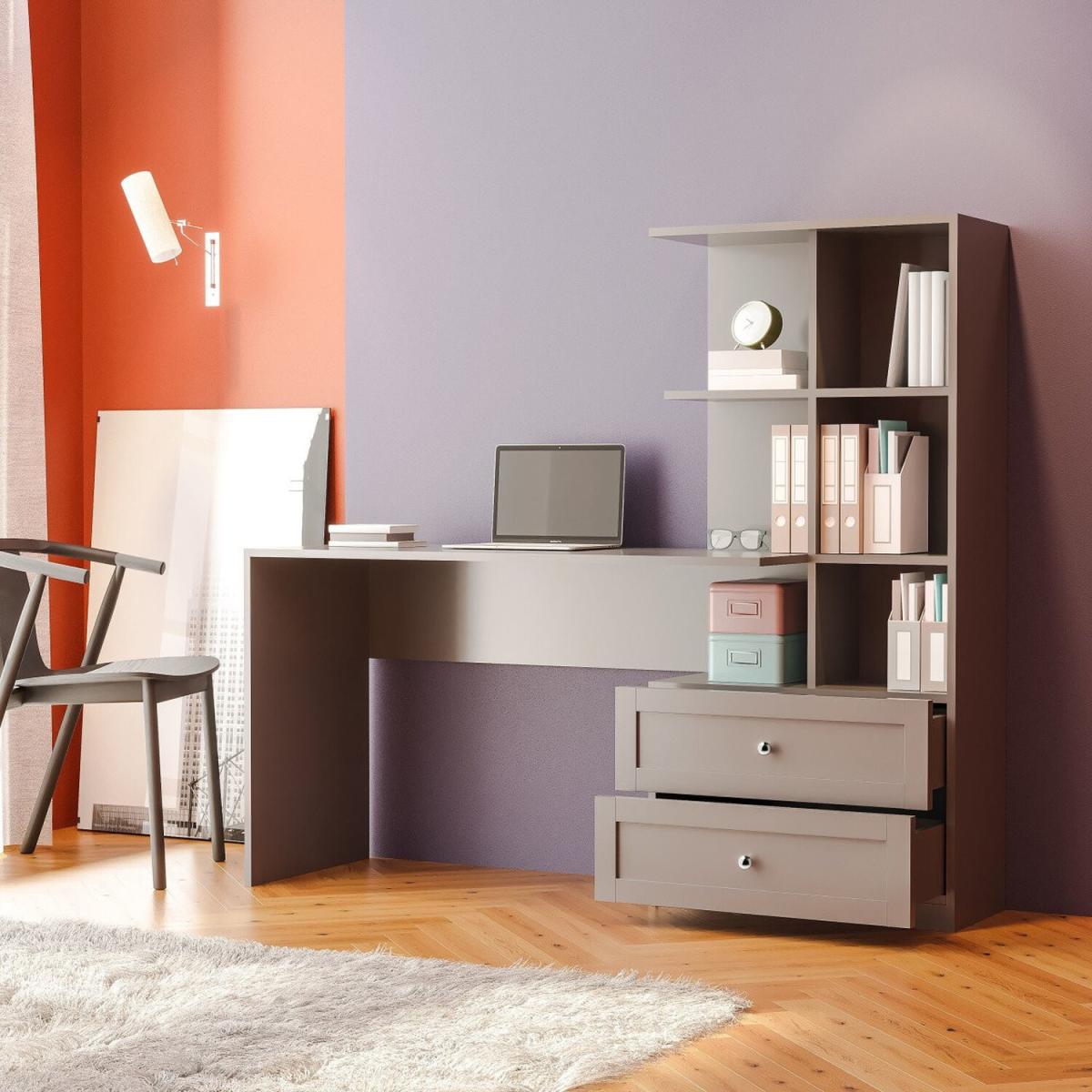 This FREDO desk and bookcase unit is a practical choice for home offices or study areas, thanks to its sleek anthracite finish that adds a modern touch. I love how the integrated shelving maximises vertical space, making it easy to keep things organised and within reach. It works well in contemporary interiors, but its neutral tone can also complement minimalist, Scandinavian, or industrial styles. For styling tips, consider adding a few decorative accessories like a desk lamp or small plants to soften the look, and keep the workspace clutter-free by using the drawers for hidden storage. It's versatile and sets a clean, organised tone for any workspace.