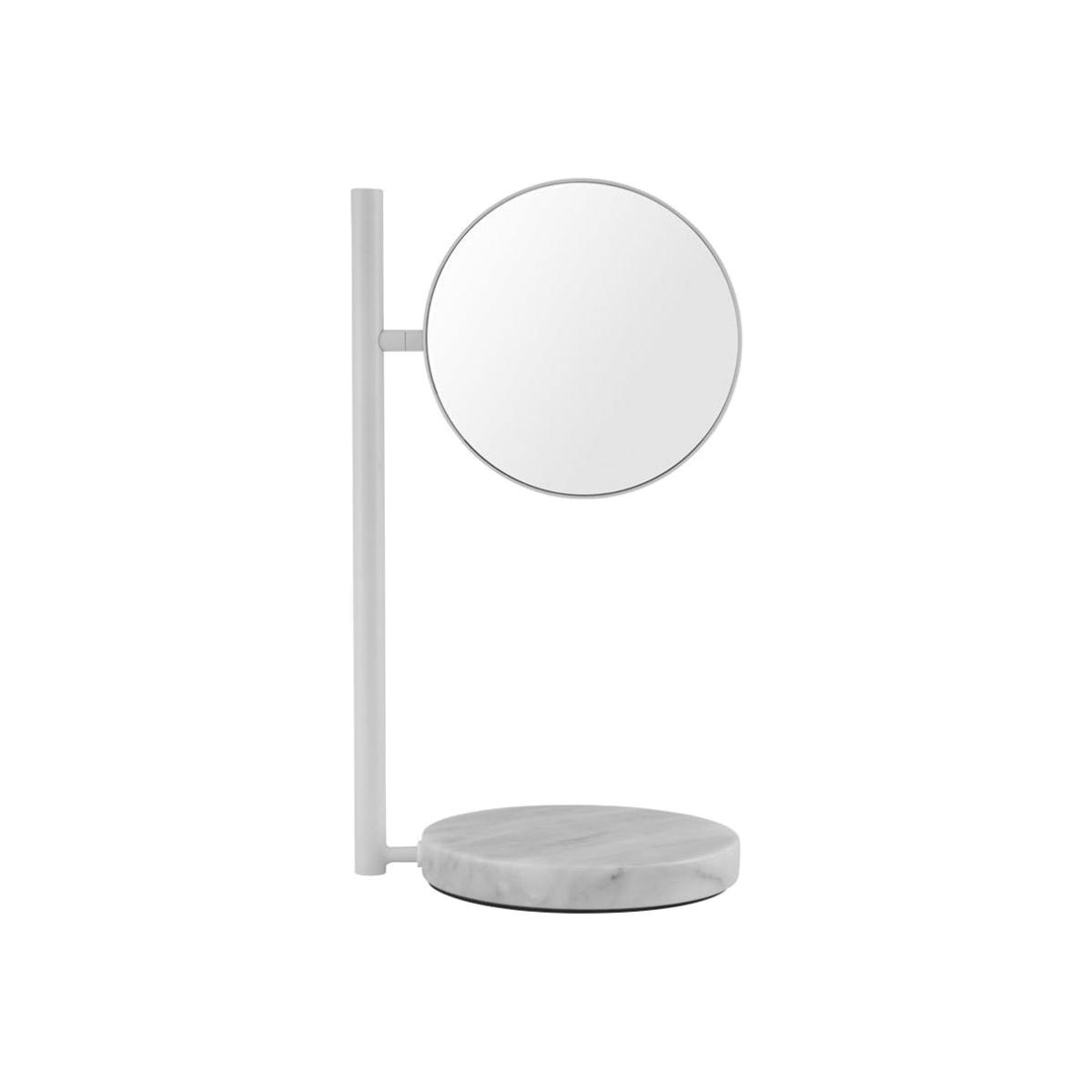 A decorative, practical Pose Mirror table mirror is an object that’s as elegant as it is practical for everyday use. Its design stands out for its repetitive circular elements. A round, solid marble base adds sturdiness to the design while providing a decorative platform to hold jewellery or other personal items. This circular mirror floats elegantly above its foot, creating a cohesive yet contrasting aesthetic. Pose is inspired by classic magnifying mirrors. On one side is a plain glass mirror, while on the other is a 3x magnifying mirror, making Pose the perfect companion for the morning and evening routine in the bathroom or bedroom. Its elegant design and timeless materials complete this pleasant, sculptural object in any room in the house. The mirror can be rotated 360° to easily and quickly switch from one side to the other. Pose Mirror can be easily moved around the house and placed wherever you wish. This mirror is available in two colour variants: white or black.