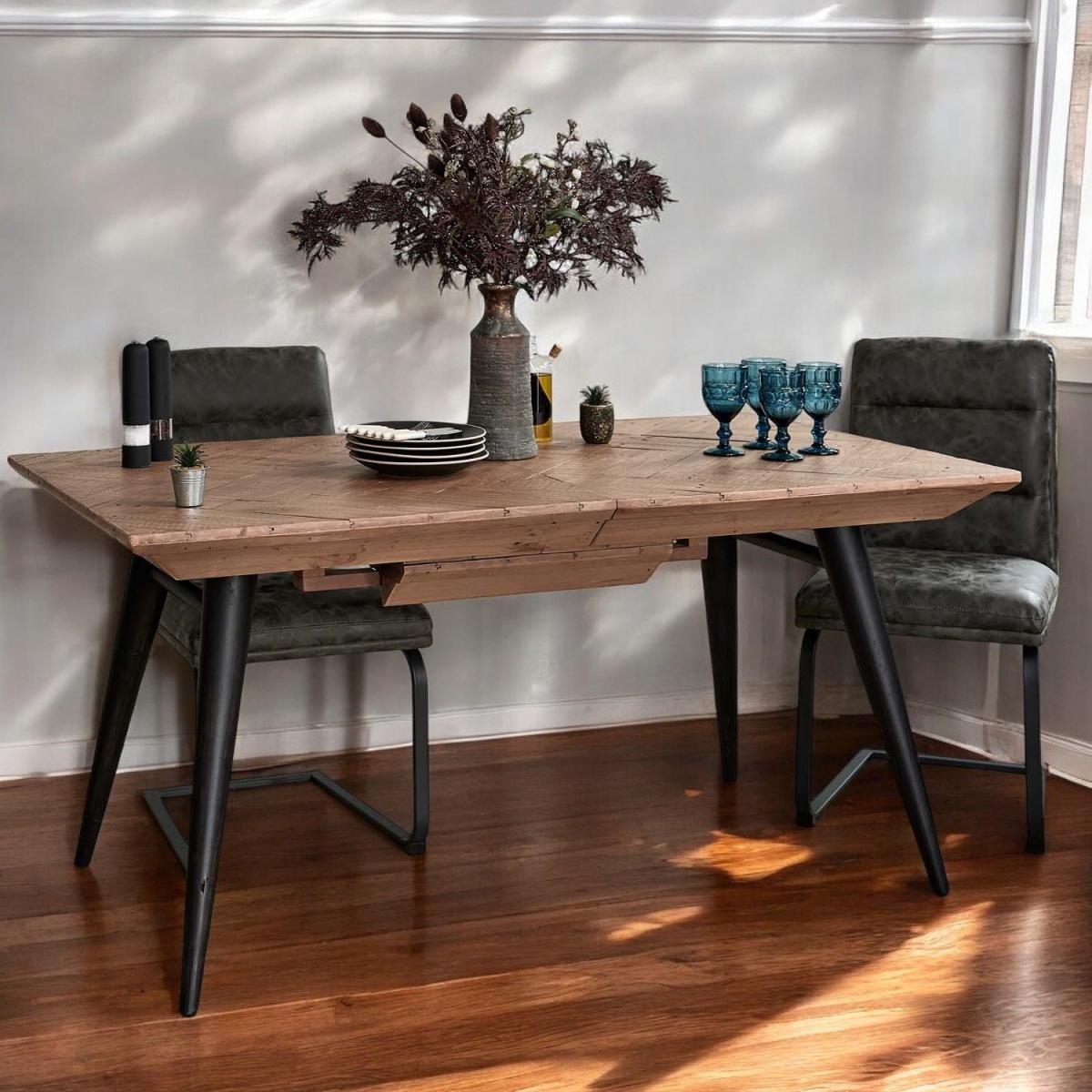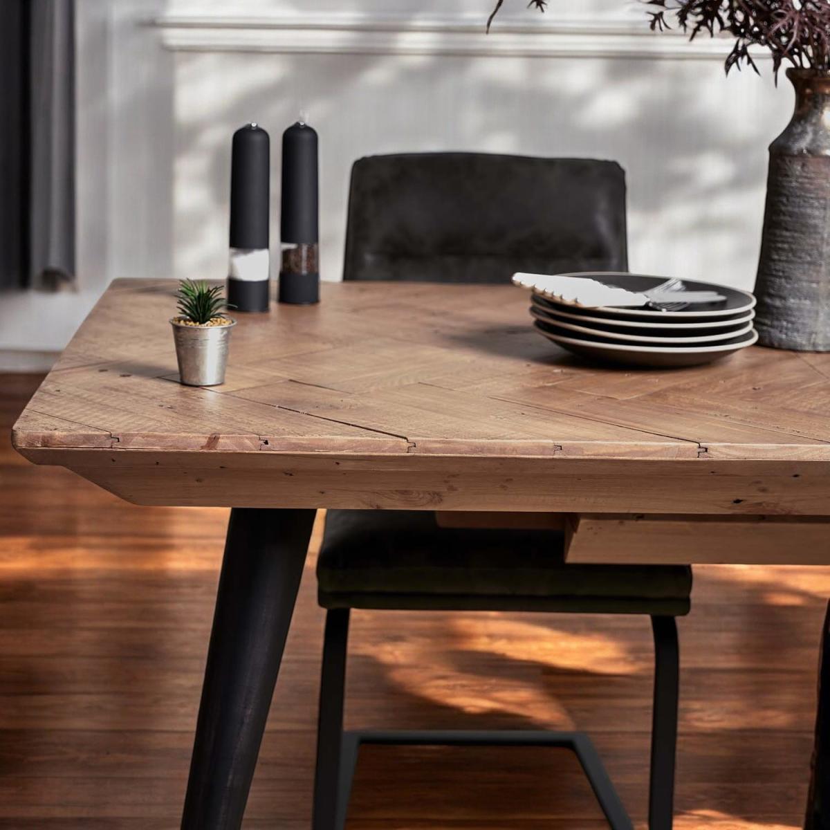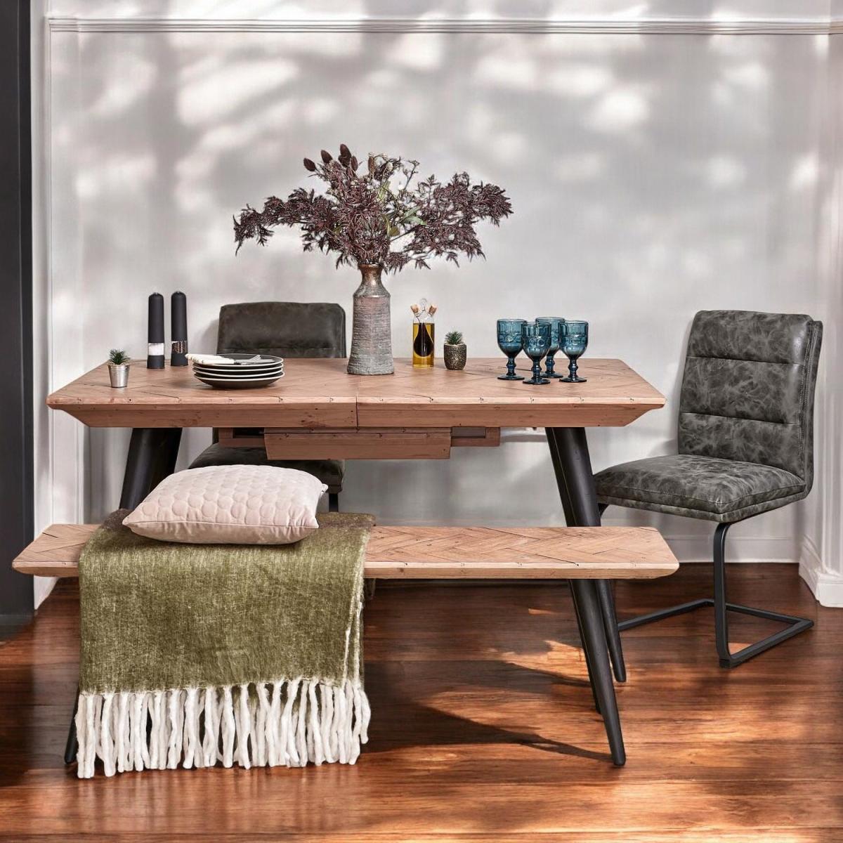 The Freemantle Extending Dining Table is a beautiful rustic addition to any dining room, with a stunning industrial design. Its four black painted legs and reclaimed wooden tabletop combine to create a completely unique table thanks to signs of a previous life, while its extending leaf helps to seat more guests. With these strong natural materials, this table offers a supportive base for a sociable mealtime, and a more sustainable option for your dining room.