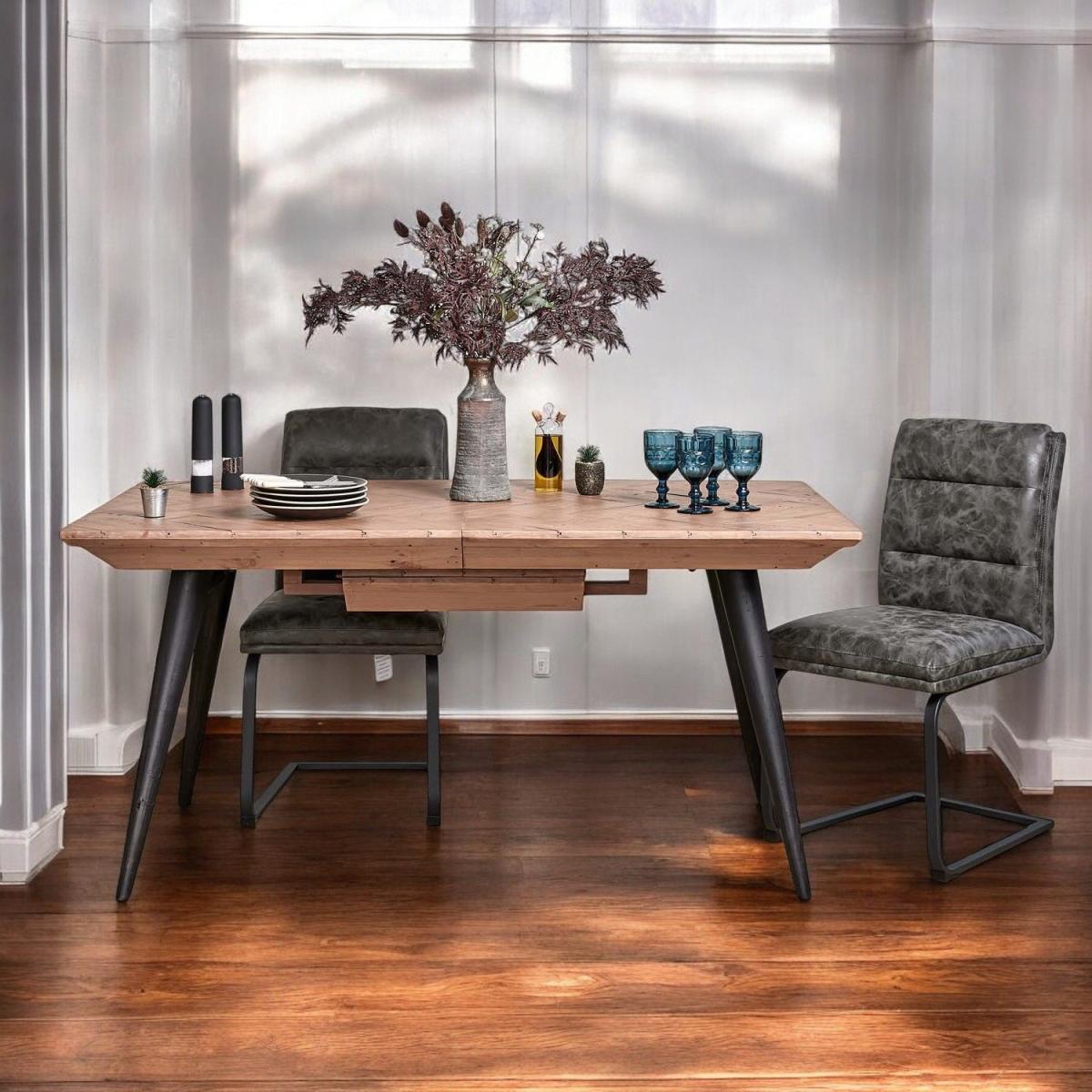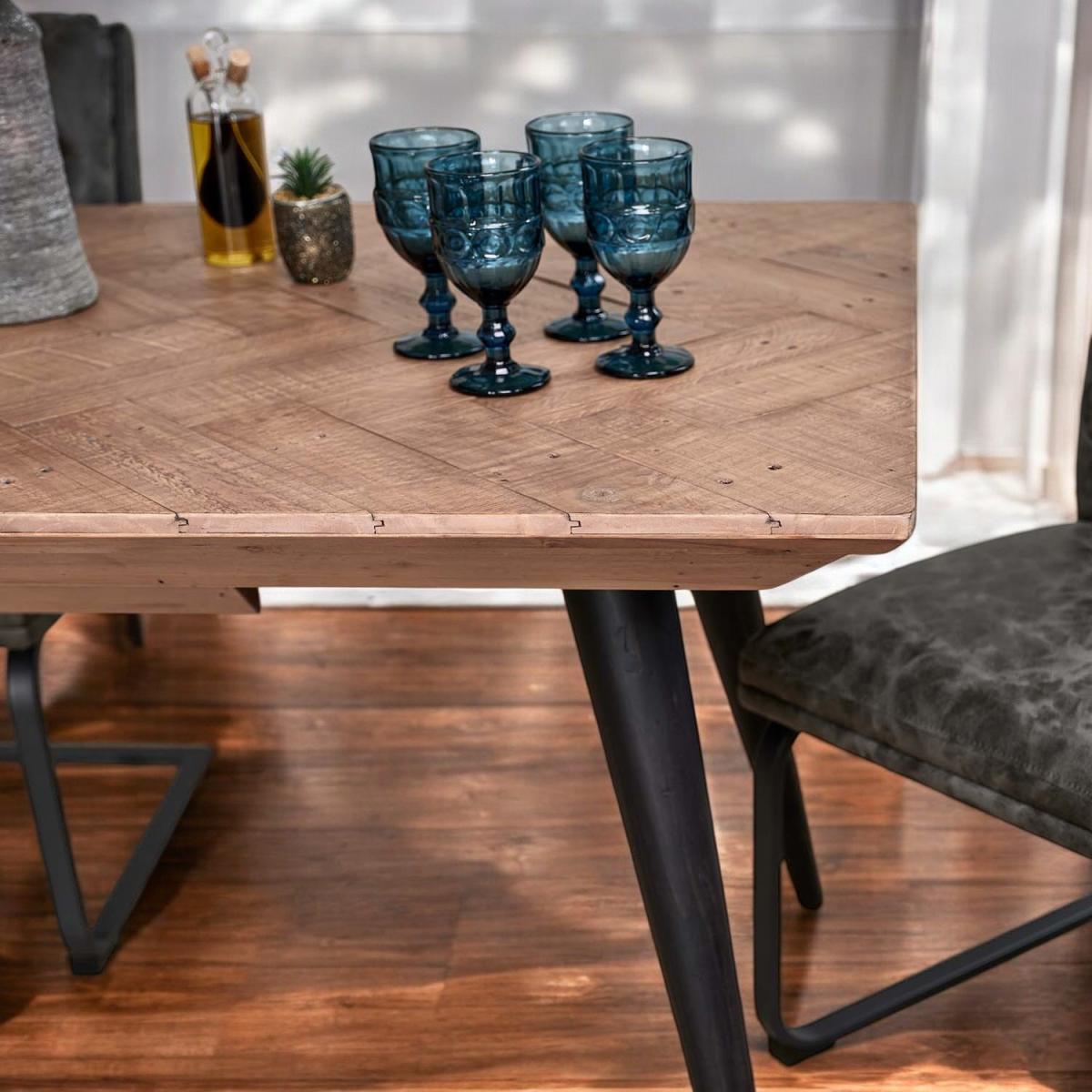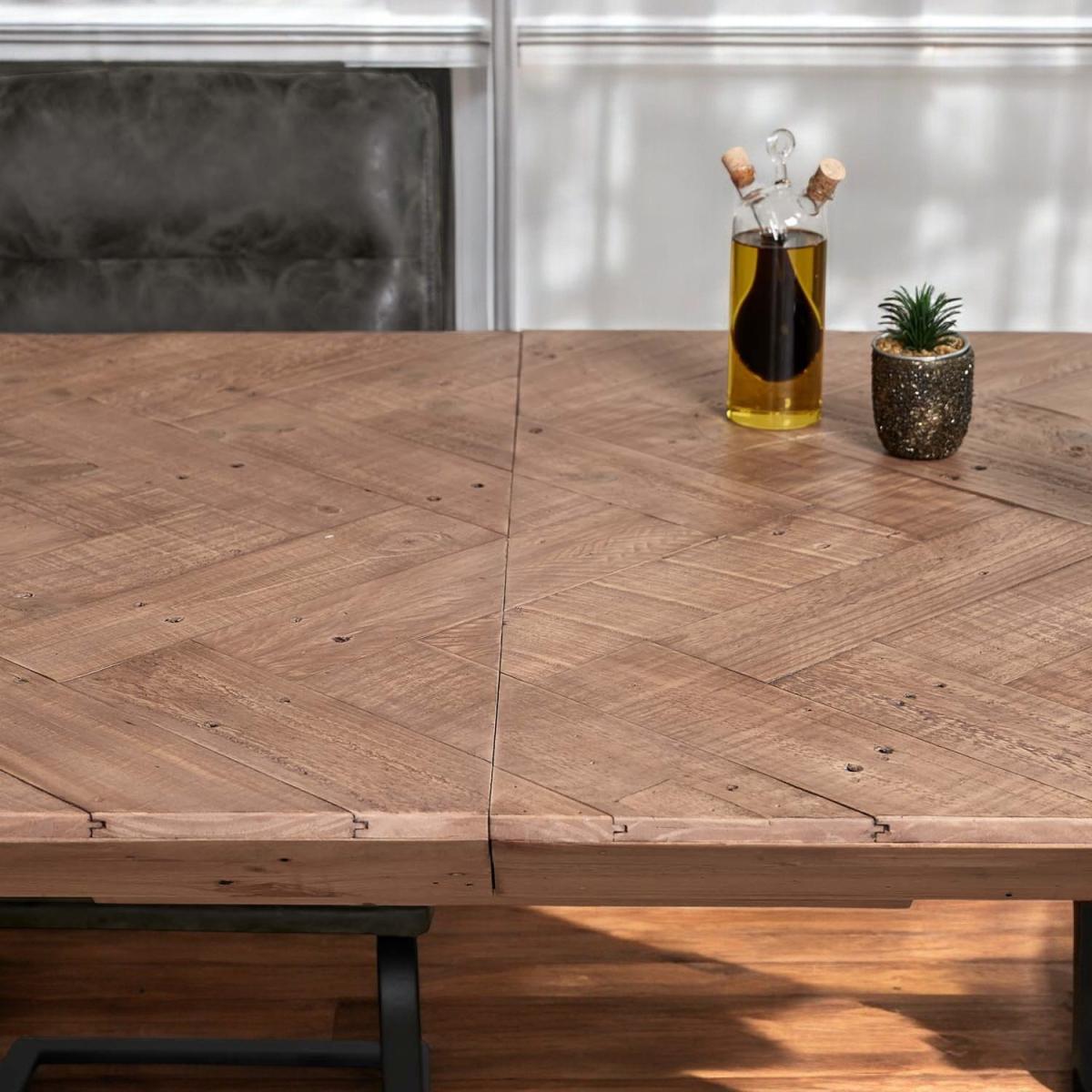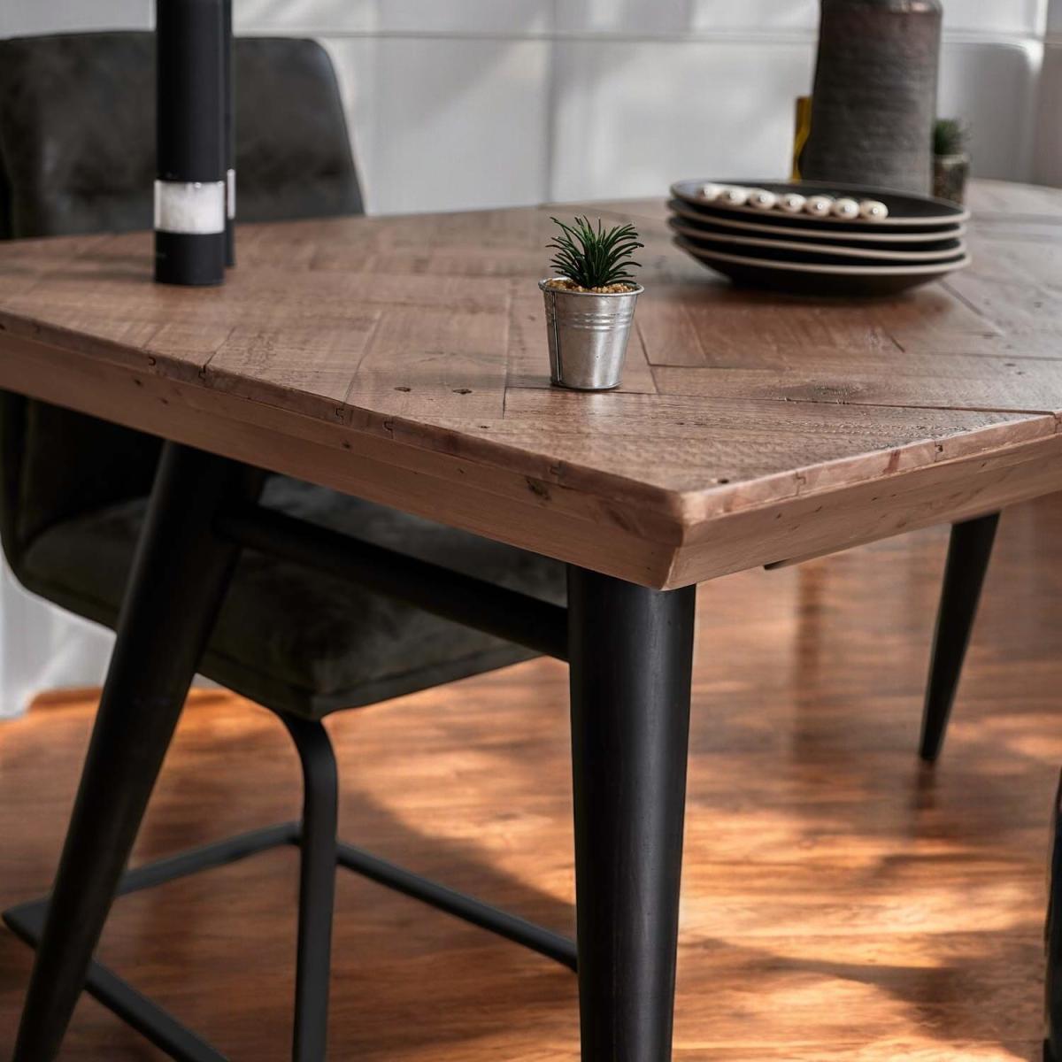 The Freemantle Extending Dining Table is a beautiful rustic addition to any dining room, with a stunning industrial design. Its four black painted legs and reclaimed wooden tabletop combine to create a completely unique table thanks to signs of a previous life, while its extending leaf helps to seat more guests. With these strong natural materials, this table offers a supportive base for a sociable mealtime, and a more sustainable option for your dining room.