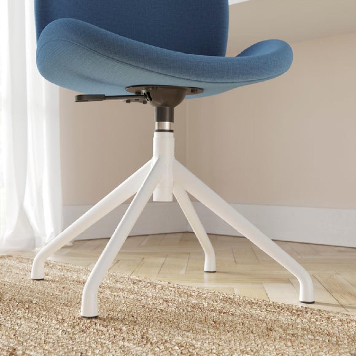 I love the Freer Office Chair for its contemporary, streamlined look and its bold colour, which can add a real pop of personality to both home and office spaces. Its soft, rounded silhouette makes it versatile enough to work in a variety of interiors, from modern minimalism to eclectic mixes. For styling tips, consider pairing it with a sleek desk or even mixing it with vintage furniture for an eclectic vibe. It works especially well in neutral-toned interiors, where the blue can stand out without clashing. Practical advice? Keep the space around it clutter-free and add a colourful cushion or throw to enhance comfort and style without compromising its clean aesthetic.