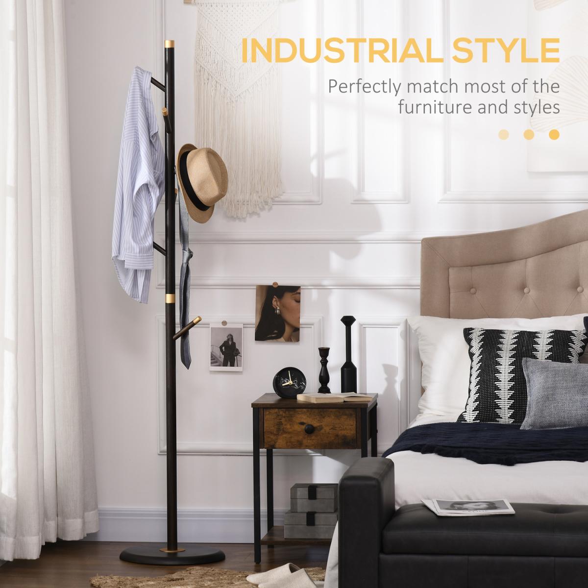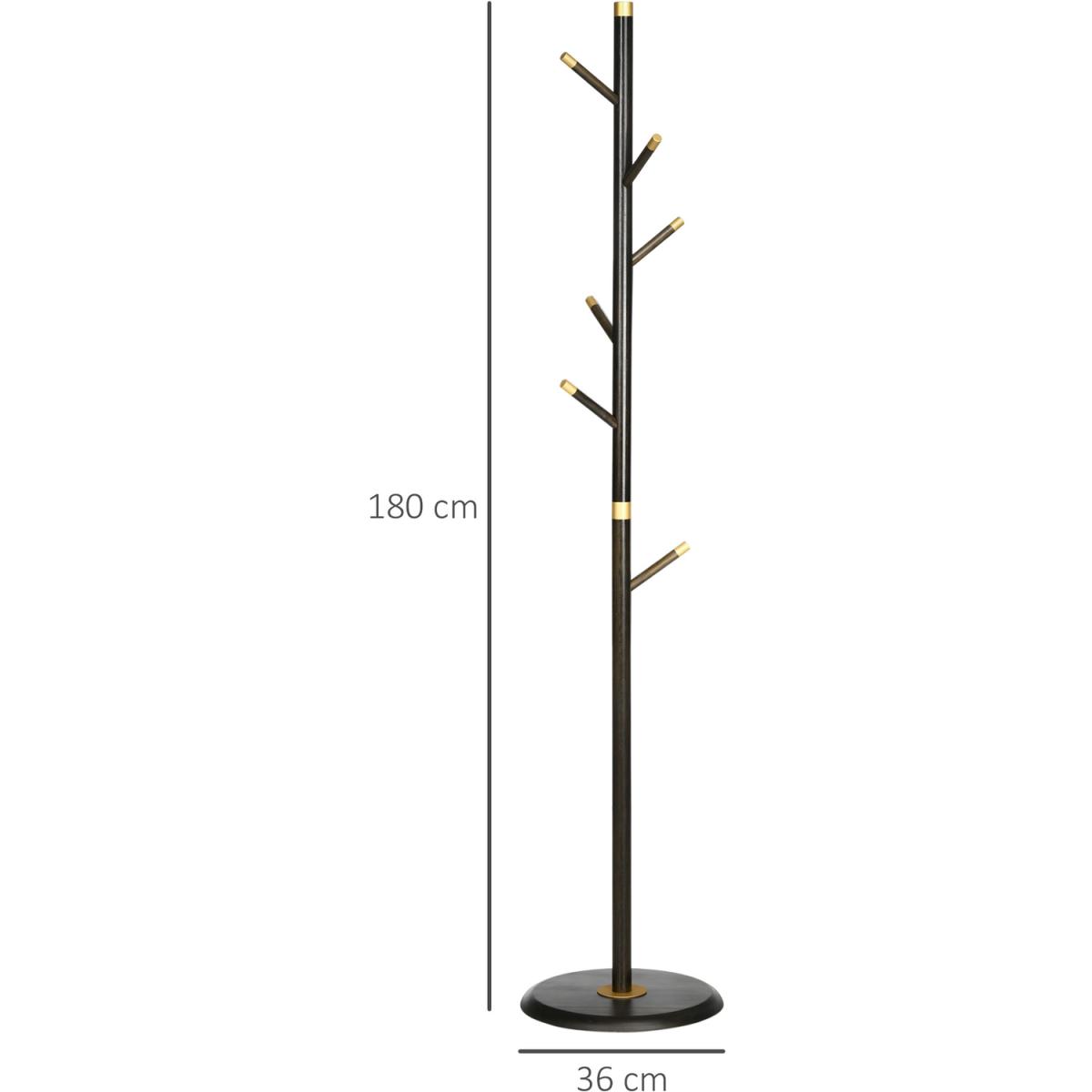 Freestanding Coat Rack Stand with 6 Hooks for Handbags Scarves Hats - Walnut brown