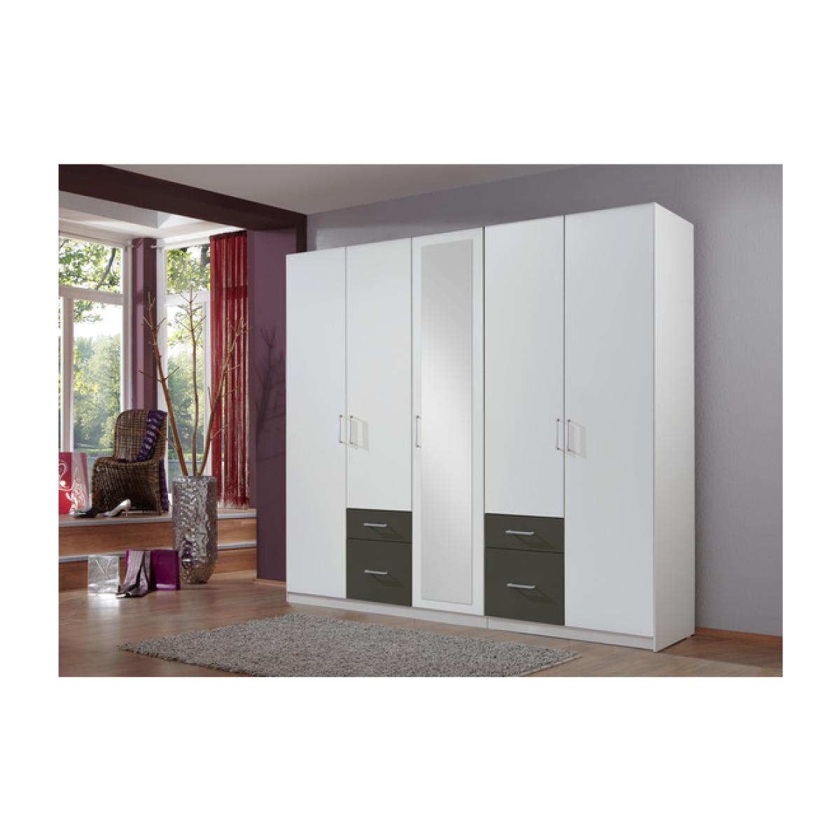 Freiburg 5 Door Wardrobe With Graphite Drawers - White