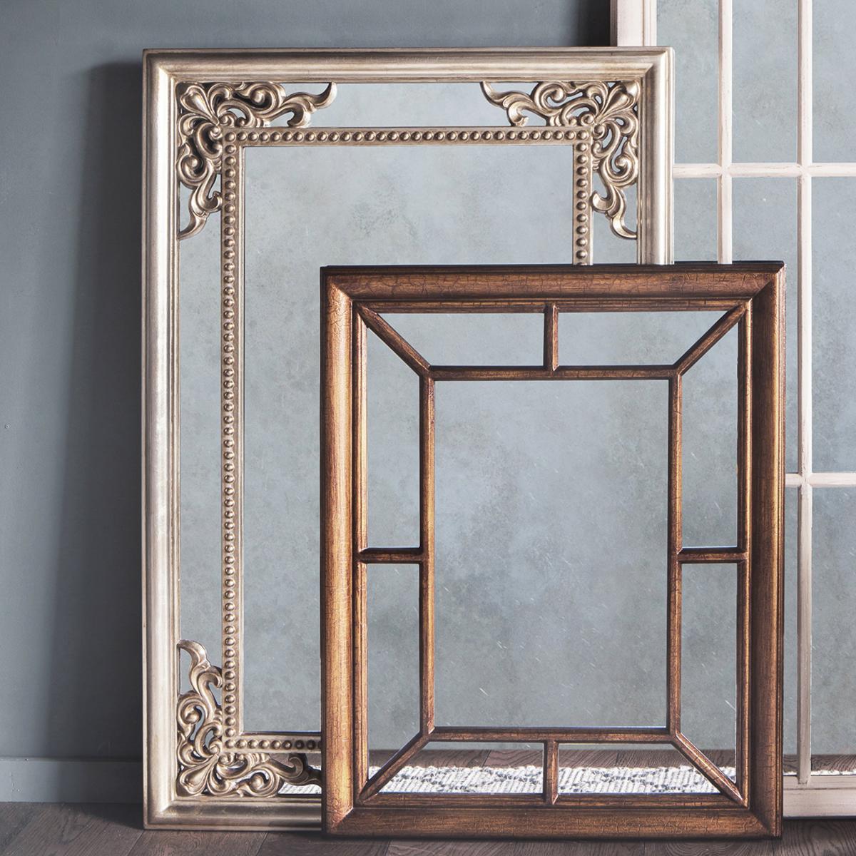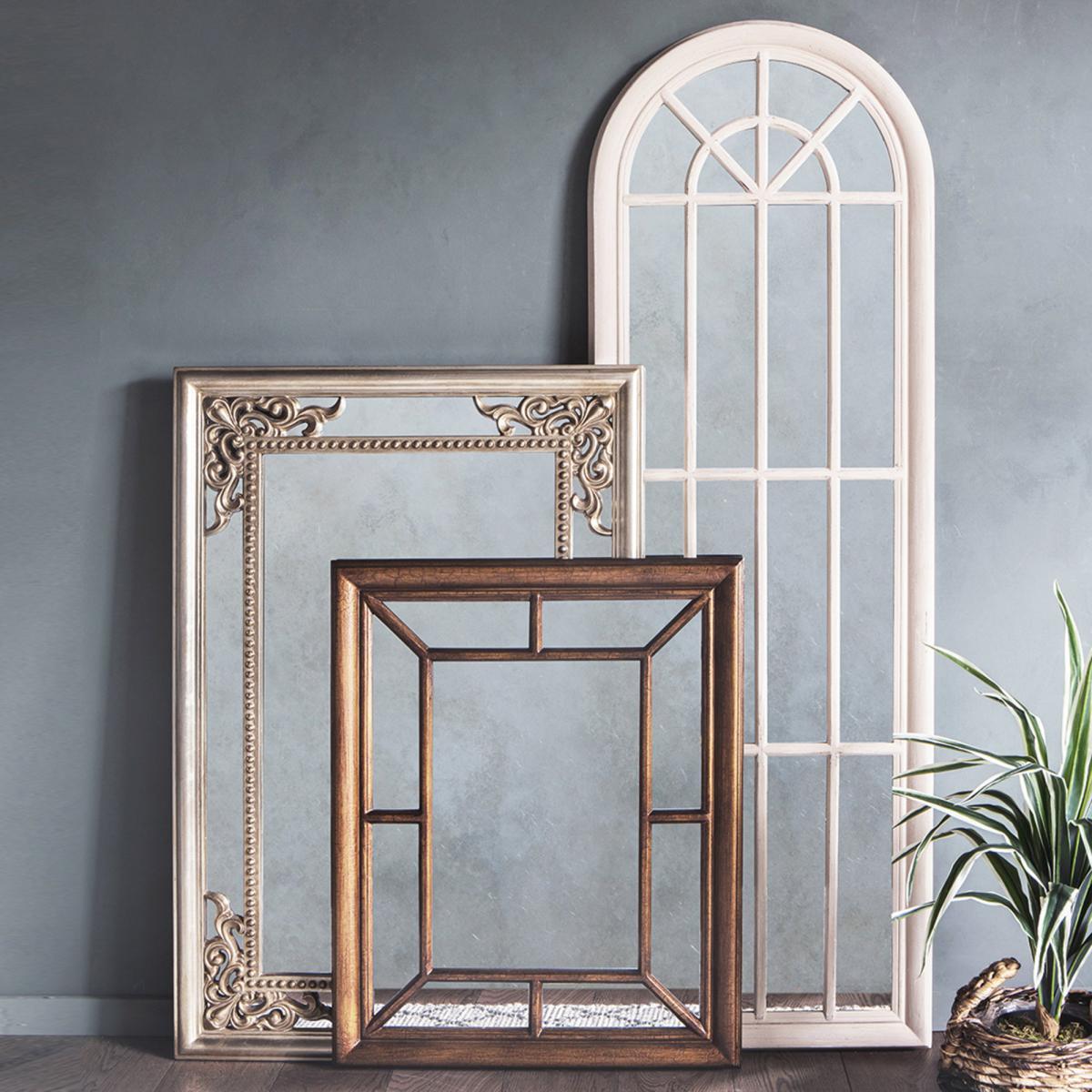 The Fremont Mirror features a classic bold design, a beautiful accent piece that will create a classic atmosphere in any room. The stylish antique look mirror is designed with intricate decorative corner detailing with a gorgeous champagne silver finish, complete with a cut out detail overlay. This mirror is perfect for adding a stylish classic touch to any wall in your home. Hang your new wall mirror using our helpful top tips, click. Here. To view.