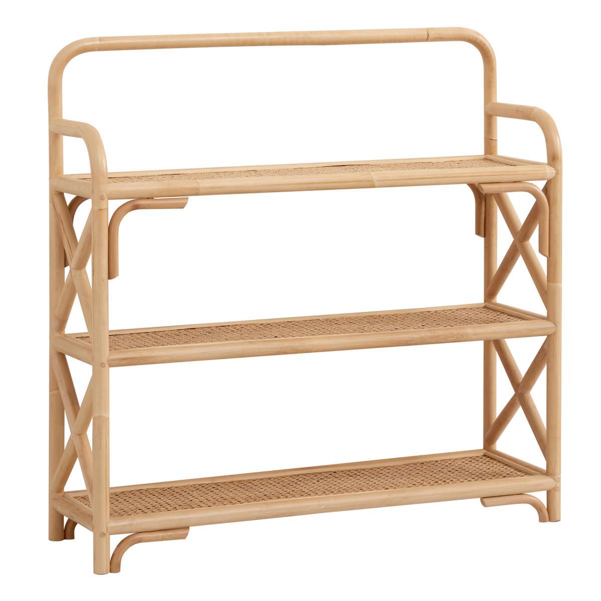 French Cane 3 Tier Shelving Unit Natural (Brown)