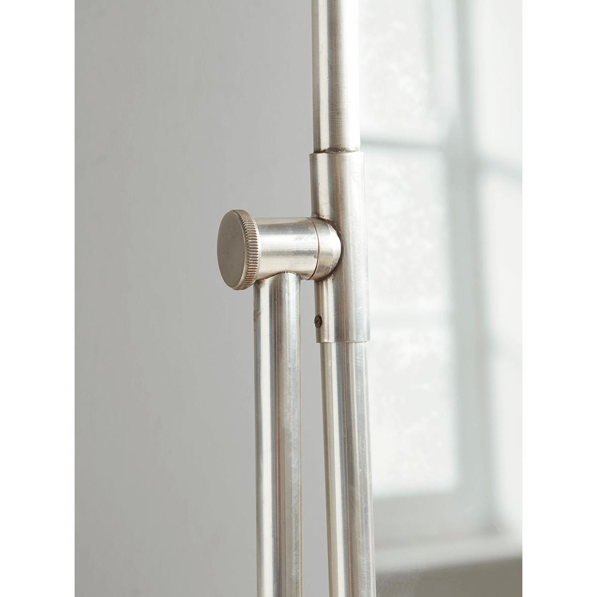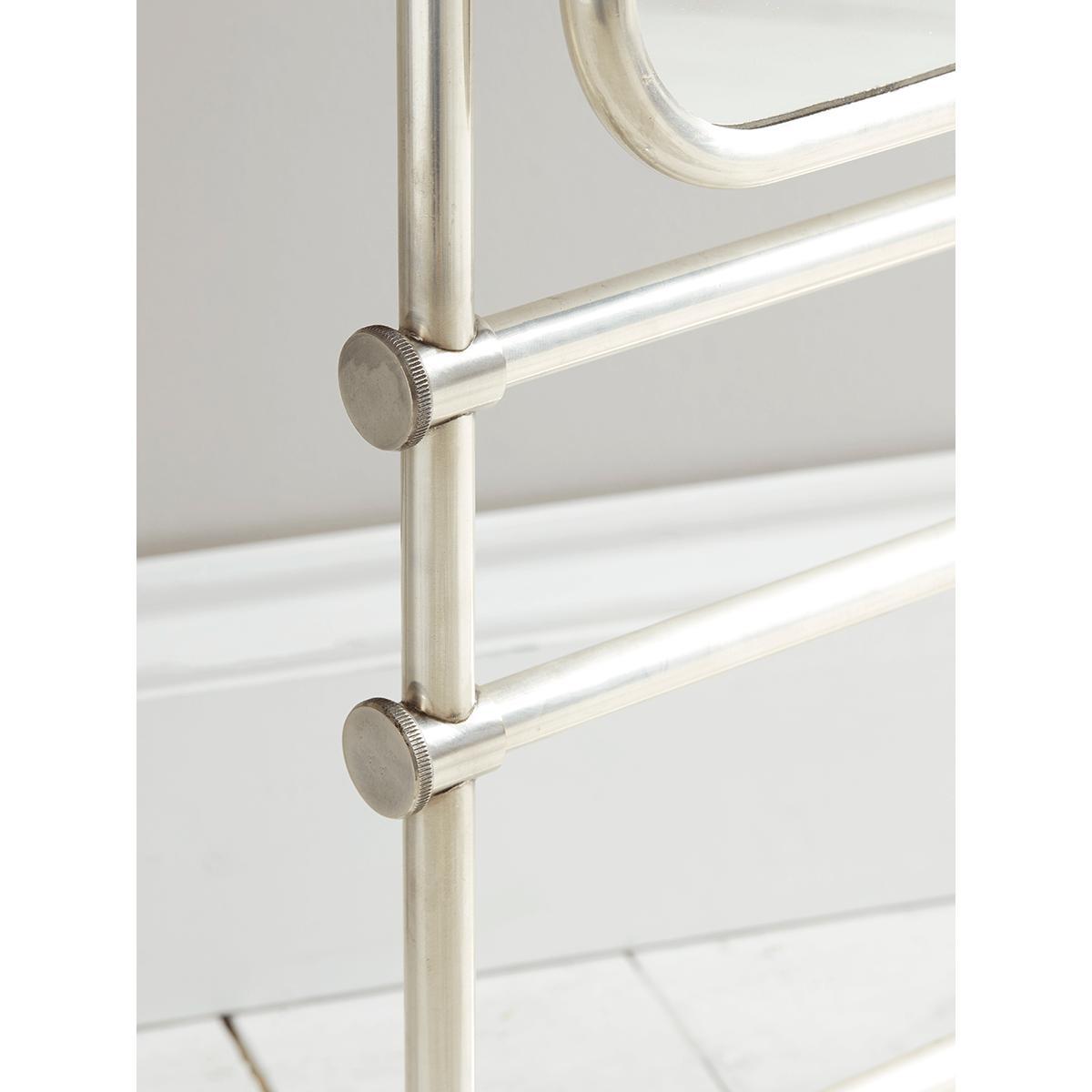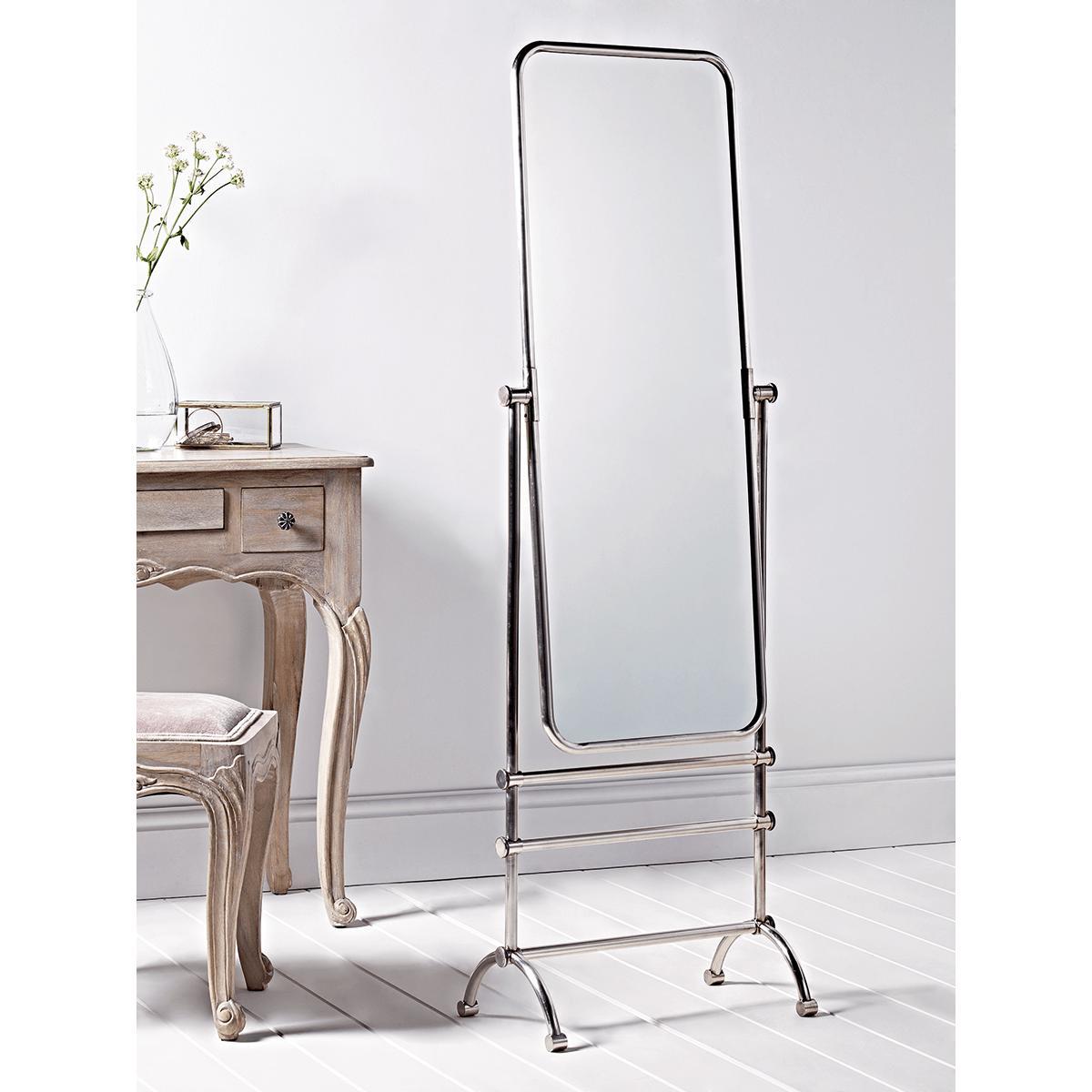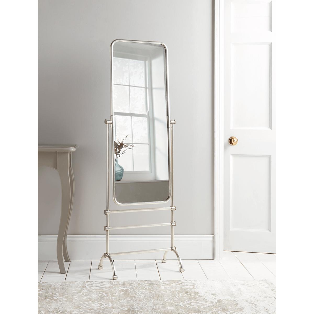 A stylish standing mirror, one with elegant design detailing to complement your look. Our mirror has a wide formed rectangular shape, and is set within an antique silver finished frame, gently curved at each corner. Clasped within a slender frame, our standing mirror needs very little space. Stand for a beautiful relaxed piece in a bedroom, dressing room or bathroom.