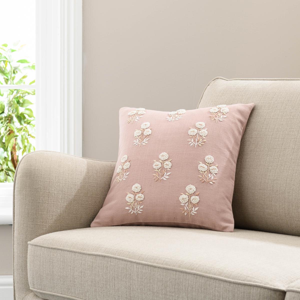 I love this pink floral cushion cover for its understated elegance and charming design. The subtle embroidery adds texture without overpowering, making it versatile enough to suit both modern and traditional interiors. It works particularly well in cosy living rooms or bedrooms with neutral or pastel palettes, effortlessly adding a touch of femininity and warmth. For styling tips, try layering it alongside other textured cushions or pairing it with a neutral throw to create a relaxed, inviting look. Keep in mind that its soft pink hue pairs nicely with greys, whites, or even darker accents for contrast. It’s a practical choice that can elevate a space without feeling too showy.