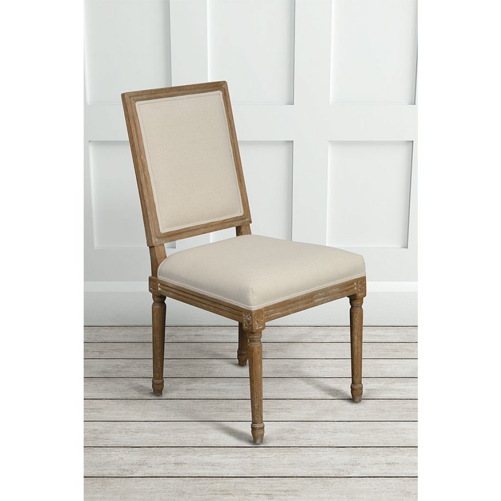 These beautiful chairs will add comfort and character to any interior - commercial or residential. Elegant and ornate, this skilfully crafted, solid oak frame has been subtly lime-washed for a chic, distressed look. Neutral oatmeal upholstery will coordinate with any colour scheme Use around a dining table or singularly in your living room, dining room or bedroom a striking statement piece. Chair No 232