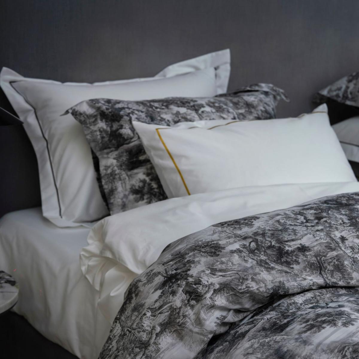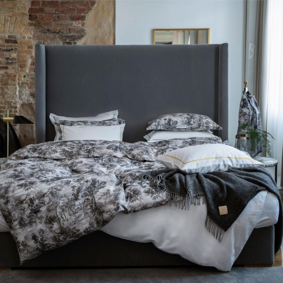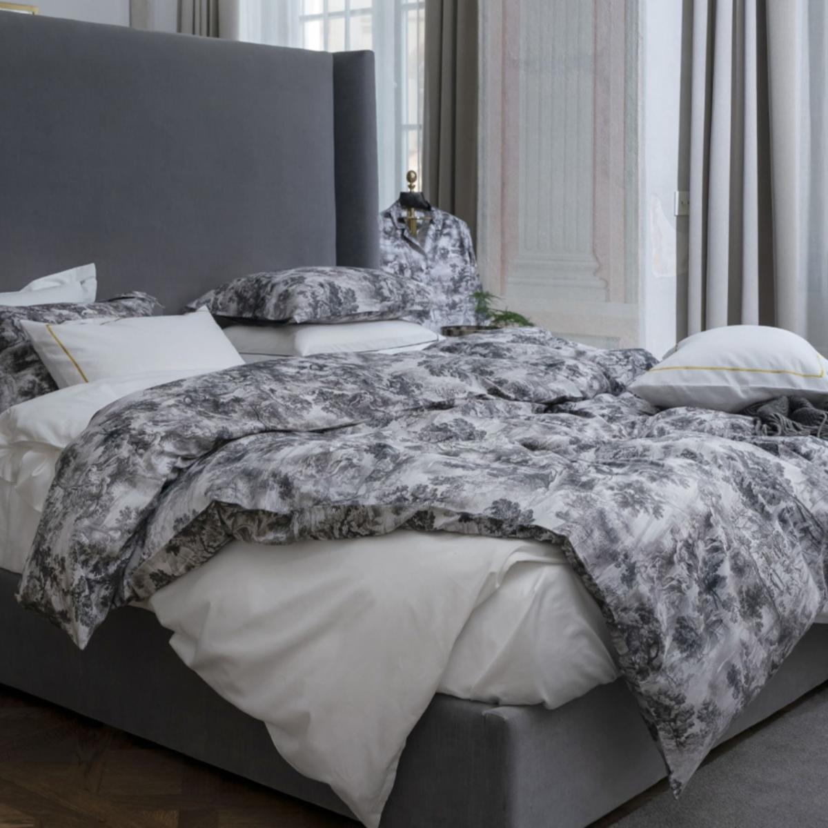 French Pattern Inspired Bed Linen Set Lover's Tale Grey to blend romantic and modern design in one. Long fiber cotton sateen of the highest quality. Natural shine and soft to touch. UK Single Bedding Set: 1 duvet cover 200x200cm + 2 pillow covers 50x70cm+5cm The premium long-fiber cotton sateen with a TC300 weaving density is designed for durability. Cotton sateen is a natural material with a natural shine, soft to the touch, and very easy to care for.