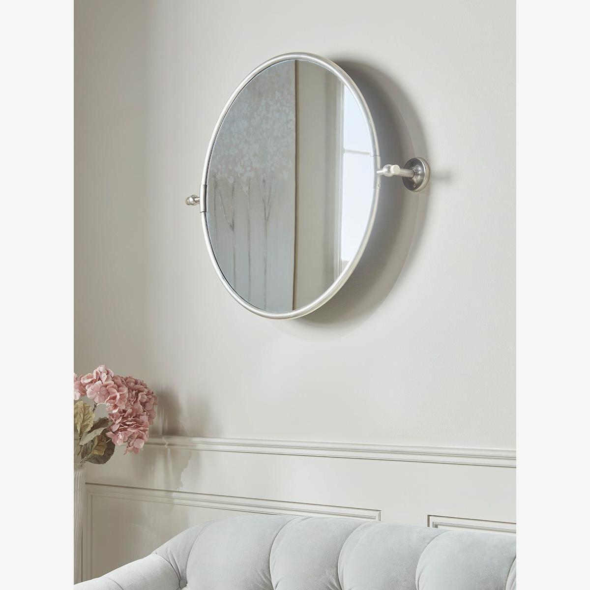 An uncomplicated design in a simple round shape, our antique silver mirror is designed to be mounted to the wall with brackets. With a timeless aesthetic, our mirror will add elegance to any home. With the ability to tilt slightly, this mirror is ideal for positioning in your bathroom or above a dressing table.