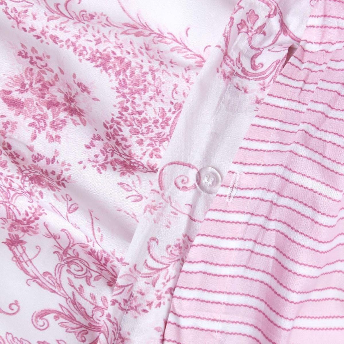 Add French style to your bedroom interiors with Homescapes' French Toile bedding collection. This duvet cover features a stylish Damask inspired French toile pattern to add colour and texture to your bedroom. This reversible duvet cover set features a simple striped pattern on the reverse, so you can mix and match how you want to style your bed. Available in three colours, go for the pale blue and white set to create a country home look in your bedroom, or keep it traditional with the light grey colour. Alternatively, for a more feminine look, Homescapes' French toile bedding set is also available in light pink and white. Each set includes matching pillowcases, with one pillowcase included in the single size set, and two pillowcases included in the double, king and super king size sets. Woven from a cotton rich blend, you will feel comfortable as you sleep in these breathable and soft bed sheets. Pair with the matching toile bedspread and cushion for a complete look (each sold separately from Homescapes). Machine washable at 40 degrees, pack includes one duvet cover set.