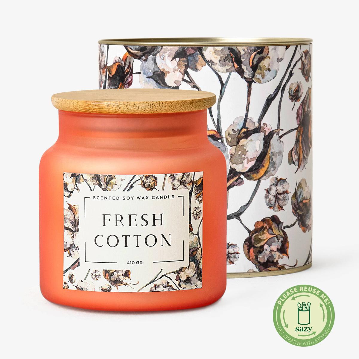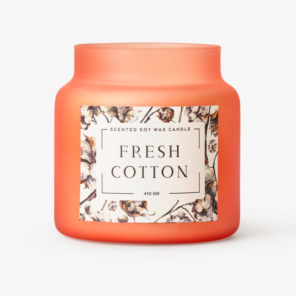 Our fresh cotton candle features top notes of orange and lemon, blended with base notes of vanilla, amber and tonka bean with floral middle notes for a gentle citrus floral combination. Burn time is 48 hours. Matching diffuser fragrances are also available.