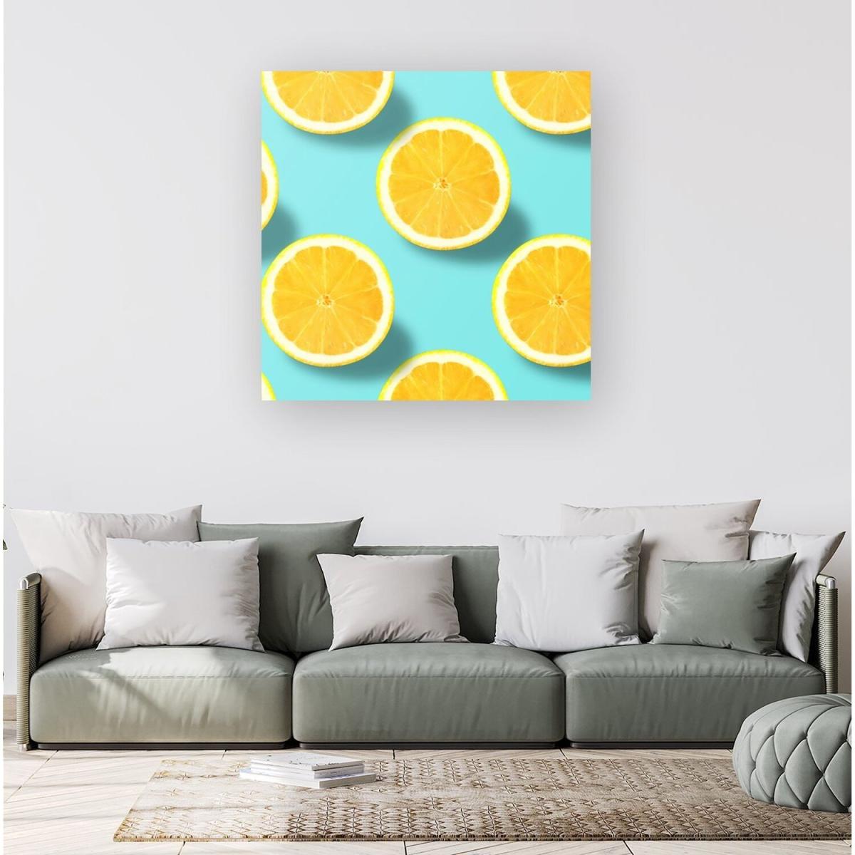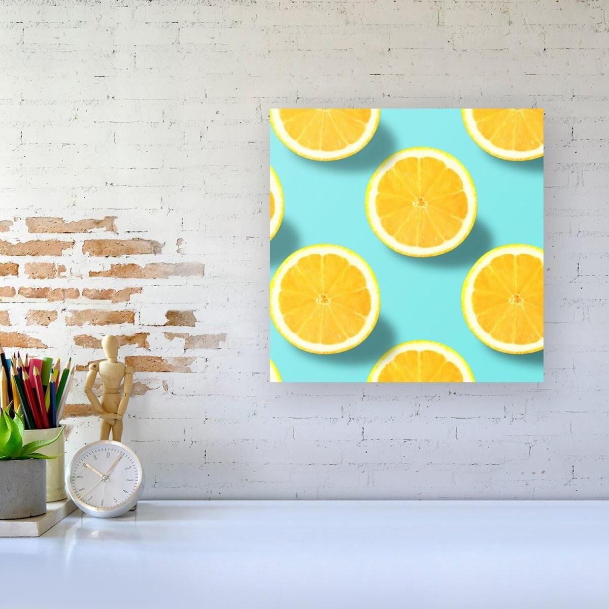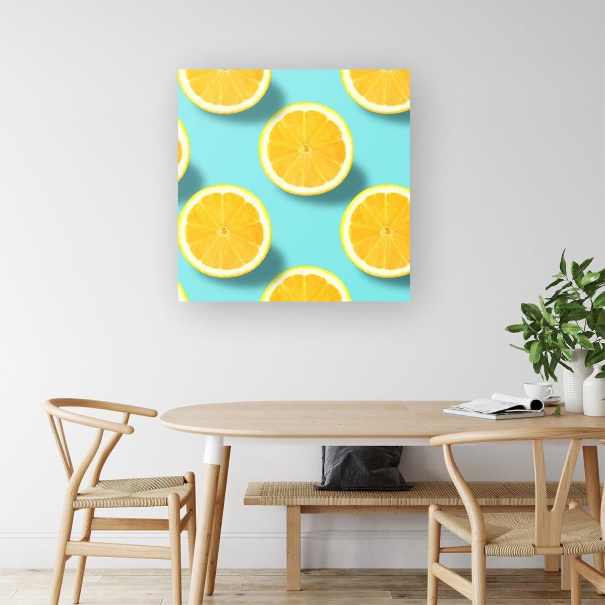 This fresh lemon canvas print is a great way to introduce a burst of colour and vibrancy into a space, making it ideal for kitchens, dining areas, or even lively living rooms. Its bold, cheerful design pairs well with minimalist interiors, adding a playful focal point without overwhelming the space. For styling tips, consider placing it alongside neutral tones to let the yellows pop or pairing with natural textures like wood or woven accessories to enhance a fresh, sunny vibe. Since it’s large, it works well as a statement piece above a sideboard, sofa, or dining table, creating an uplifting atmosphere in any room.