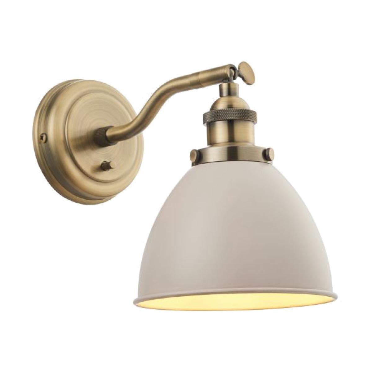 An authentic ‘resto’ style adjustable wall light, finished in vintage stone colour paint with antiqued brass plated details. Featuring an adjustable knuckle and accessible on/off switch, pair this wall light with filament LED lamps for that perfect industrial style. The perfect addition for today’s stylish homes to create that on trend bar, bistro look. Colour: Brown. Lamp Holder Type: E14. Bulb Type: Golf Ball. Maximum Bulb Wattage: 40. W. Bulb Included: No. Number of Bulbs: 1.