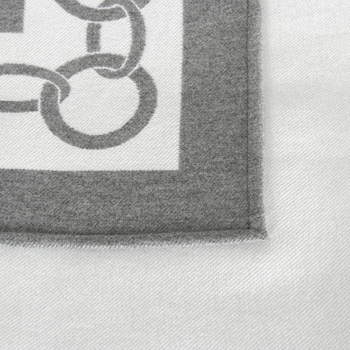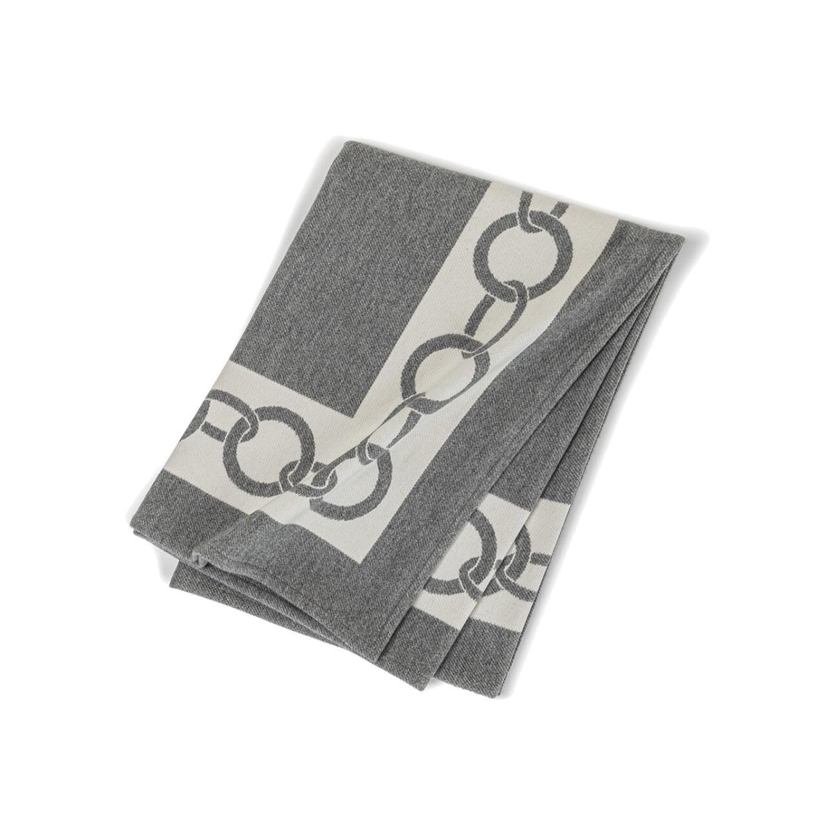Frette - 100% Wool Throw with Chain Jacquard Boarder - Grey/Milk