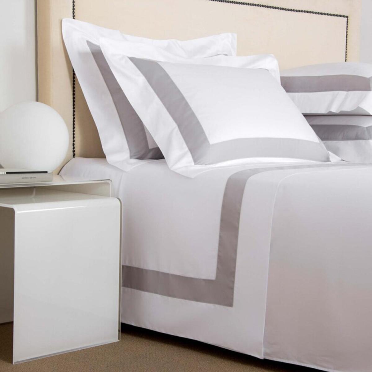 Drift off in luxury with this Bicolore sheet set from Frette. Crafted in Italy, this sheet set includes two flat sheets and two pillowcases to help your create a coordinated bedroom look. Made from silky soft 100% cotton, it's in fresh white with a simple border stripe design. Key features: * Material: 100% cotton * Set includes: * 2 x flat sheet: 270x320cm * 2 x pillowcases: 51x71cm * Soft 250 thread count * Plain white design * Border stripe detailing * In soft grey * Made in Italy * Machine wash cold * Pillowcases & duvet set available separately