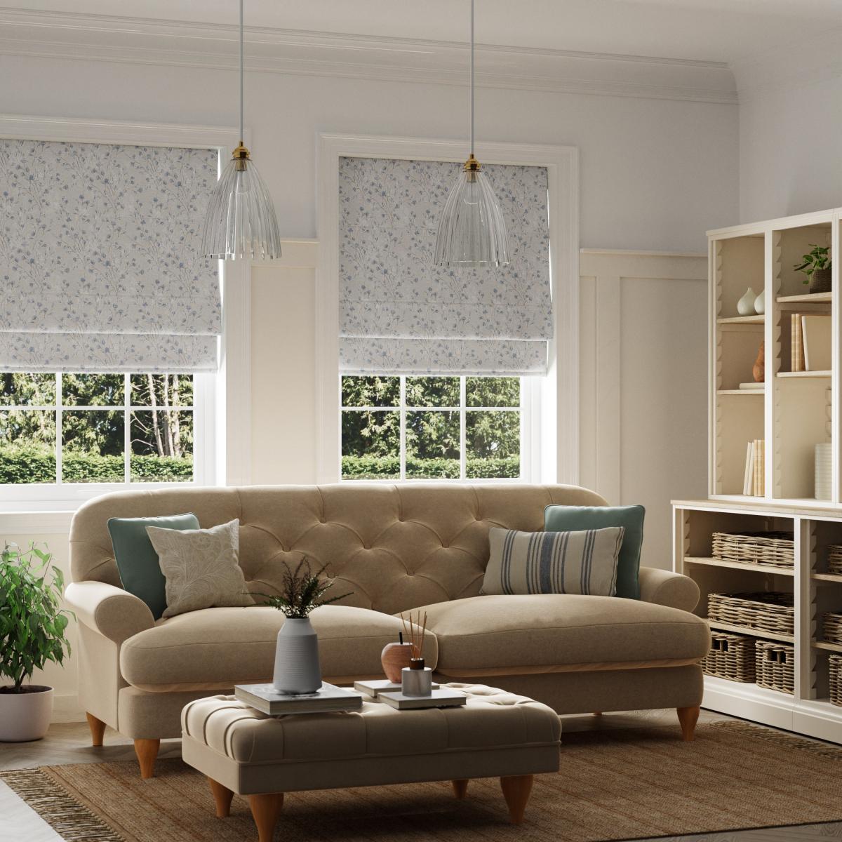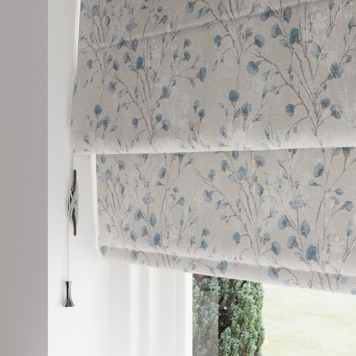 The Freya roman blind with its delicate branching floral design with soft blue accents is the perfect addition to any living space. Face fabric and lining are crafted from recycled polyester, and we added a blackout finish to reduce unwanted external light making it suitable for any room in the house. Available in a range of sizes, this roman blind is supplied with all fixings included for easy installation. At the back of your Roman Blind, the cords attach to the fabric using clips. We take the safety and well-being of children very seriously so these clips also double up as a child-safety feature. They will detach when they are put under too much strain to prevent the risk of strangulation. If they become detached accidentally during use of your blind, these can be easily clipped back into place to allow normal operation of the cords.