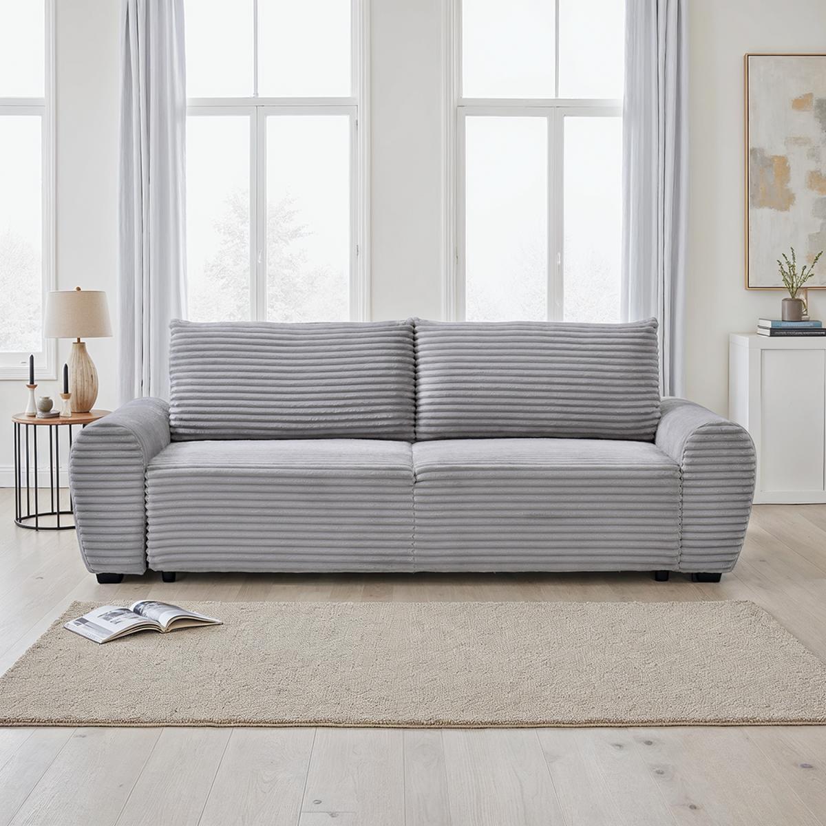 The Freya Sofa Bed, designed with the perfect mix of style and functionality, is made to be the social hub of your home. To create the bed area, simply pull out the base of the sofa, and then fold down the backrest towards you, unveiling a spacious bed area, highlighting the Freya's versatility. Upholstered in high-quality Jumbo Cord fabric, the Freya offers a luxurious but retro feel while maintaining durability for everyday use, perfect for sitting, lounging and sleeping. Need extra storage? When you pull out the base of the sofa, you will reveal a generous compartment, perfect for stowing blankets, pillows, or other essentials. The Freya blends elegance and durability, ensuring it complements any contemporary interior. Whether you're lounging, entertaining, or accommodating guests, the Freya Sofa Bed is designed to meet all your needs.