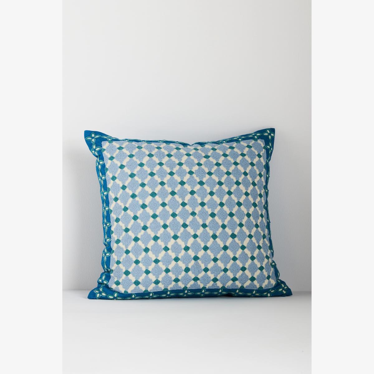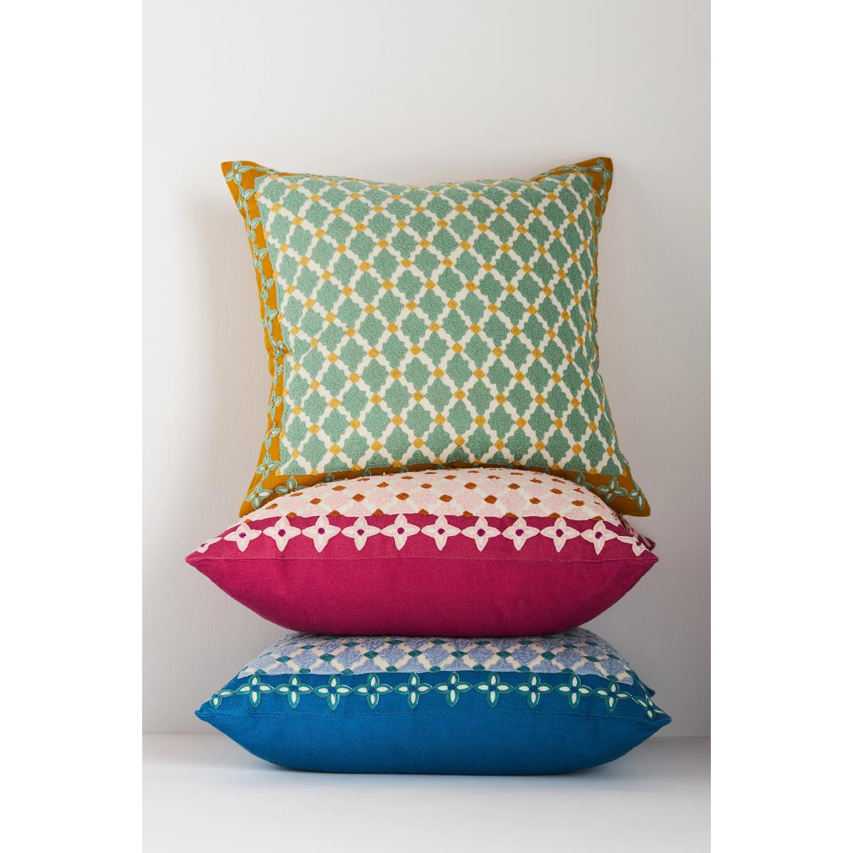 I love the geometric embroidery of this cushion-it adds subtle texture and a modern touch without overwhelming a space. It works especially well in contemporary or Scandi-inspired interiors, but can also bring a fresh energy to more traditional settings when paired with neutral tones. Practical styling tip: group it with solid-coloured cushions in coordinating shades to really highlight the embroidery, or mix with different textures like knits or velvet for a layered, inviting look. It’s versatile enough for sofas, armchairs, or even a bed, making it a great all-rounder for adding a bit of interest to your soft furnishings.