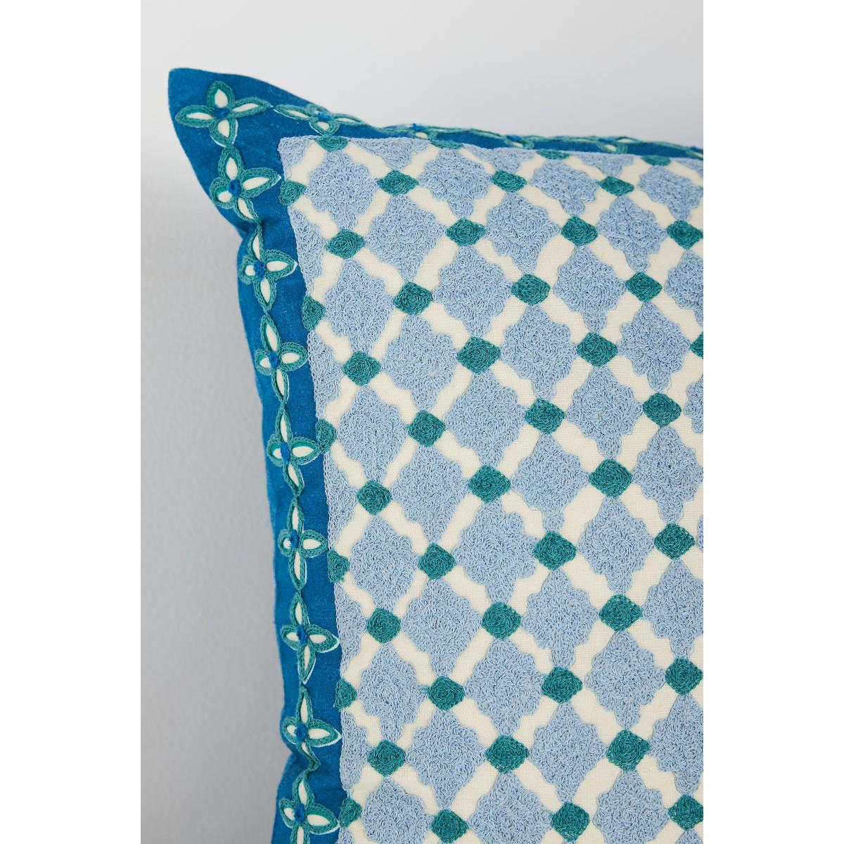 Freya Linen Embroidered Geometric Cushion