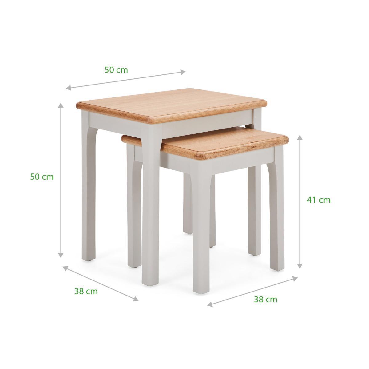 This set of nesting tables is a versatile addition to both modern and traditional interiors. I love how the grey finish provides a subtle, neutral tone that easily complements a variety of colour schemes, while the natural wood accents add warmth and texture. They work particularly well in compact living spaces or alongside a sofa, offering flexible surface area for drinks, lighting, or decorative accessories. Practical styling tips include stacking the smaller table under the larger one when not in use or spreading them out in different corners of a room to maximise functionality and visual interest. Their simple design makes them suitable for minimalist schemes, country cottages, or Scandinavian-inspired interiors, where clean lines and natural materials are key.