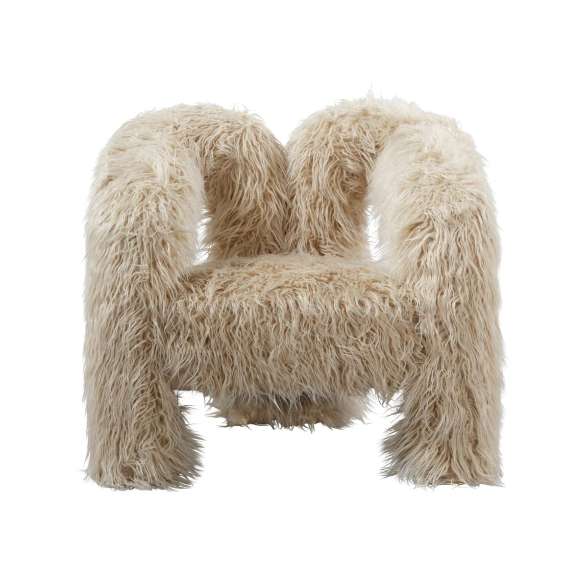 * Modern design* Faux fur* Extra-large size* Statement piece Turn heads with this statement faux fur accent chair. With a modern curved design and extra-large comfort, this chair will be a great centrepiece to any contemporary décor. Arriving fully assembled, this chair will soon be enhancing any space.