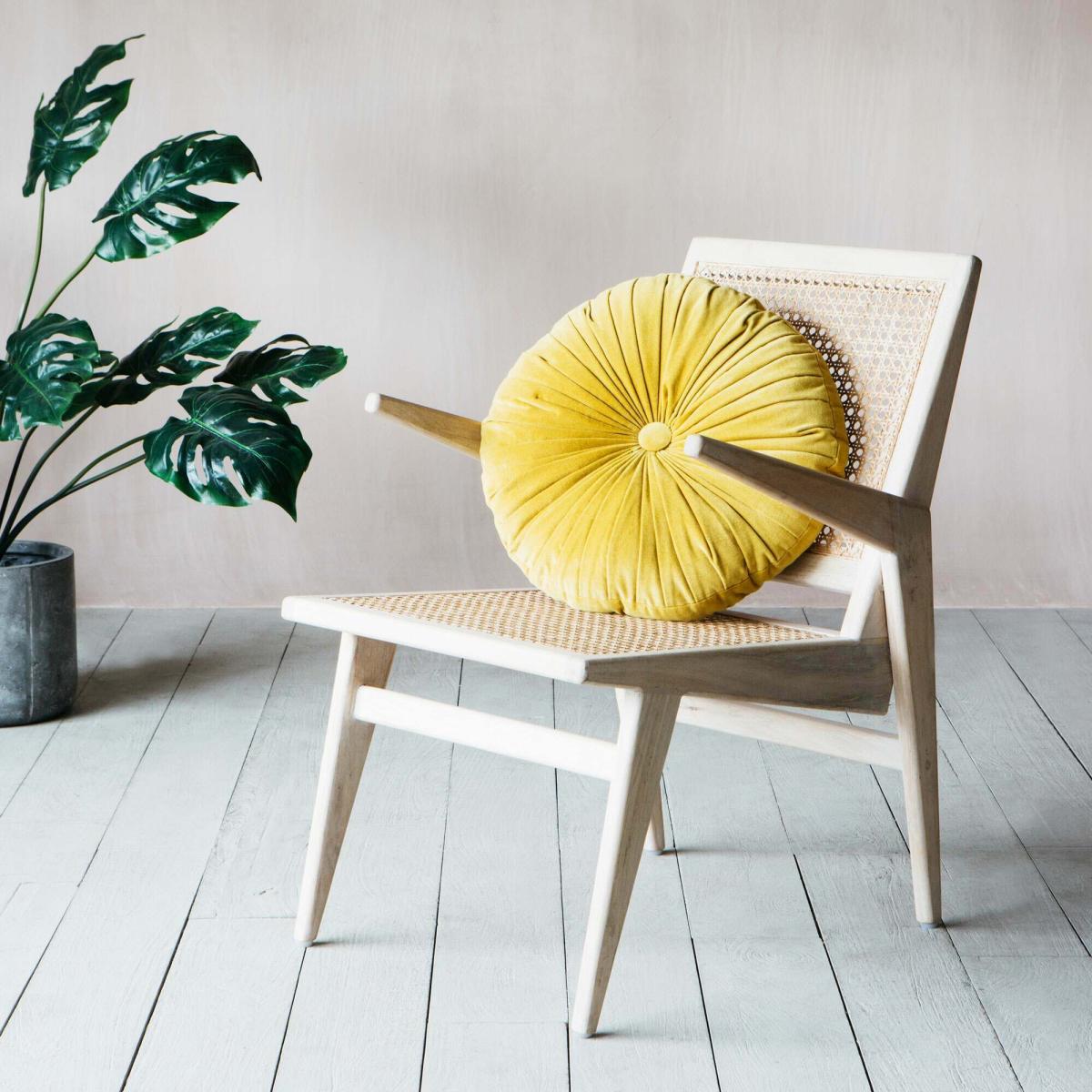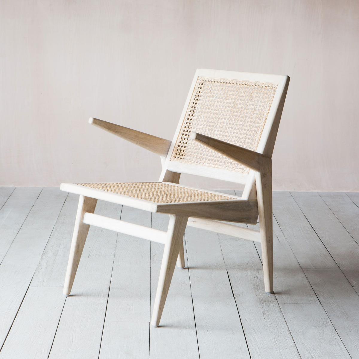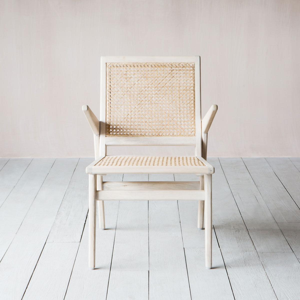 Taking inspiration from mid-century design, our Fria cane back armchair is crafted in India from sustainable mango wood with a handwoven cane-webbed rattan seat and fresh whitewash finish.