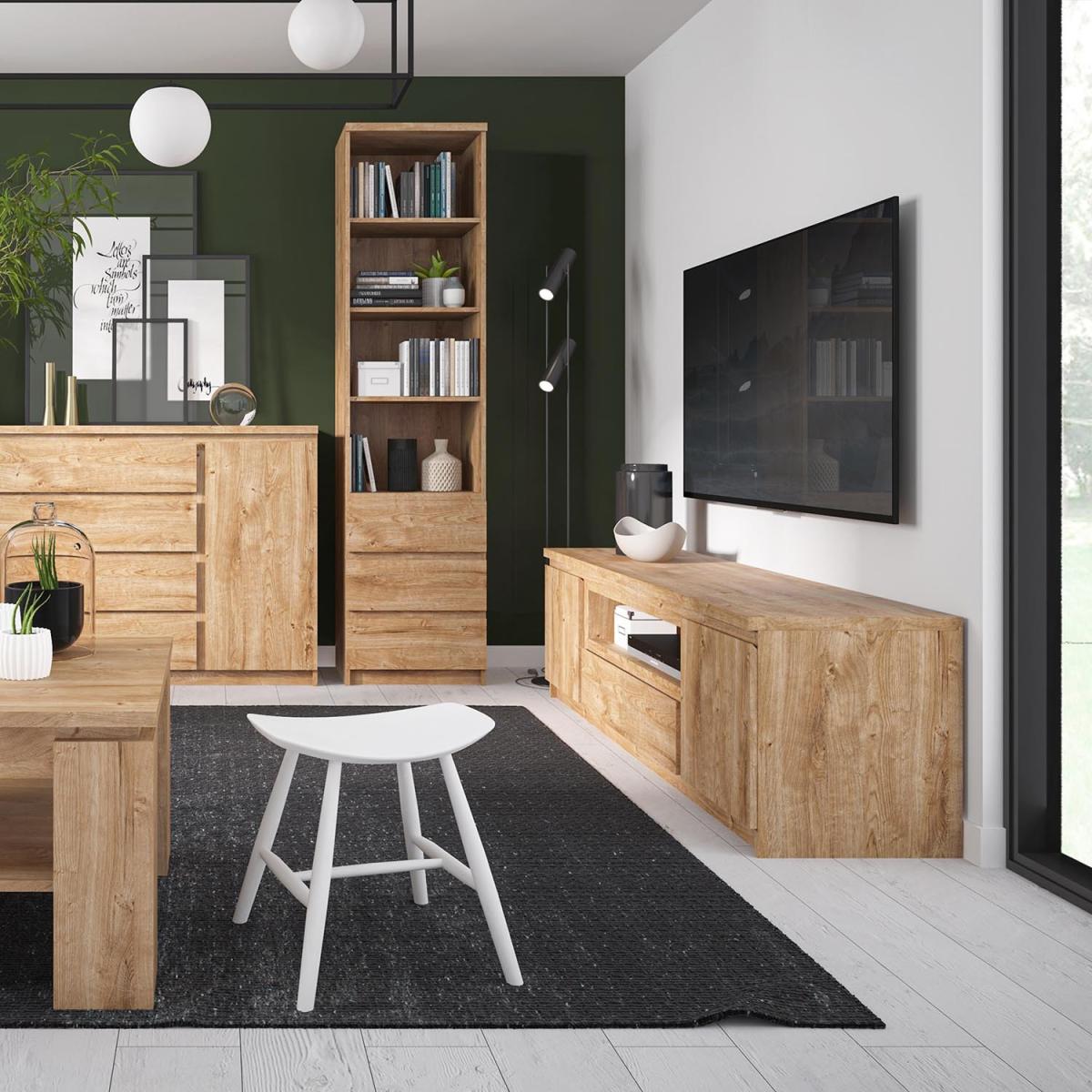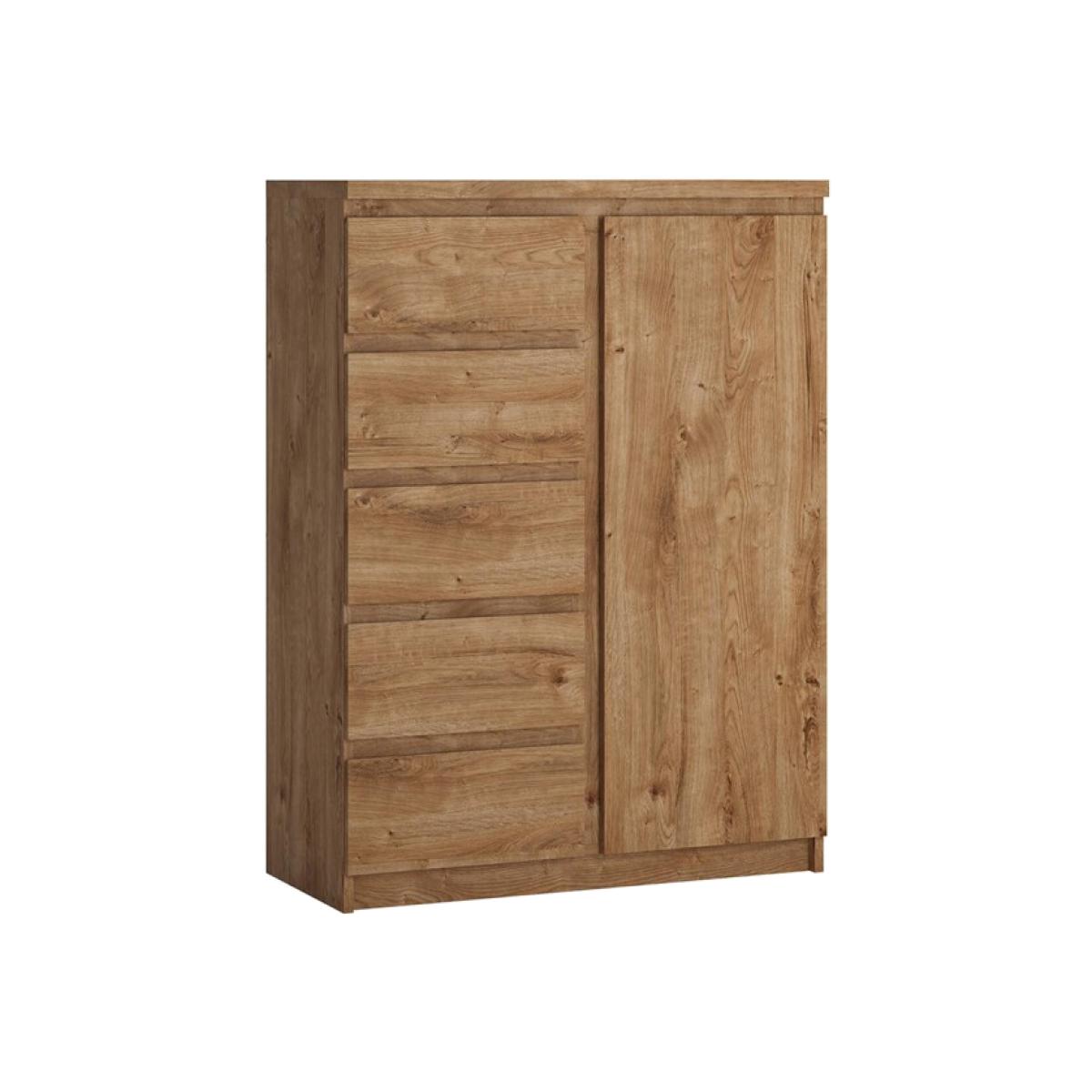 The Fribo 1-Door 5-Drawer Cabinet is a high chest of drawers that takes up little space, yet is roomy - an ideal piece of furniture for small interiors. There are five drawers and three hidden shelves behind the door. The cabinet has been equipped with practical furniture accessories in the form of drawers with full extension, as well as a handle-free system that is convenient to use. The chest of drawers from the Fribo collection deserves recognition for its simple form and functionality, easy to coordinate within your home. The furniture is made of laminated chipboard, resistant to moisture, scratches, damage and high temperature.