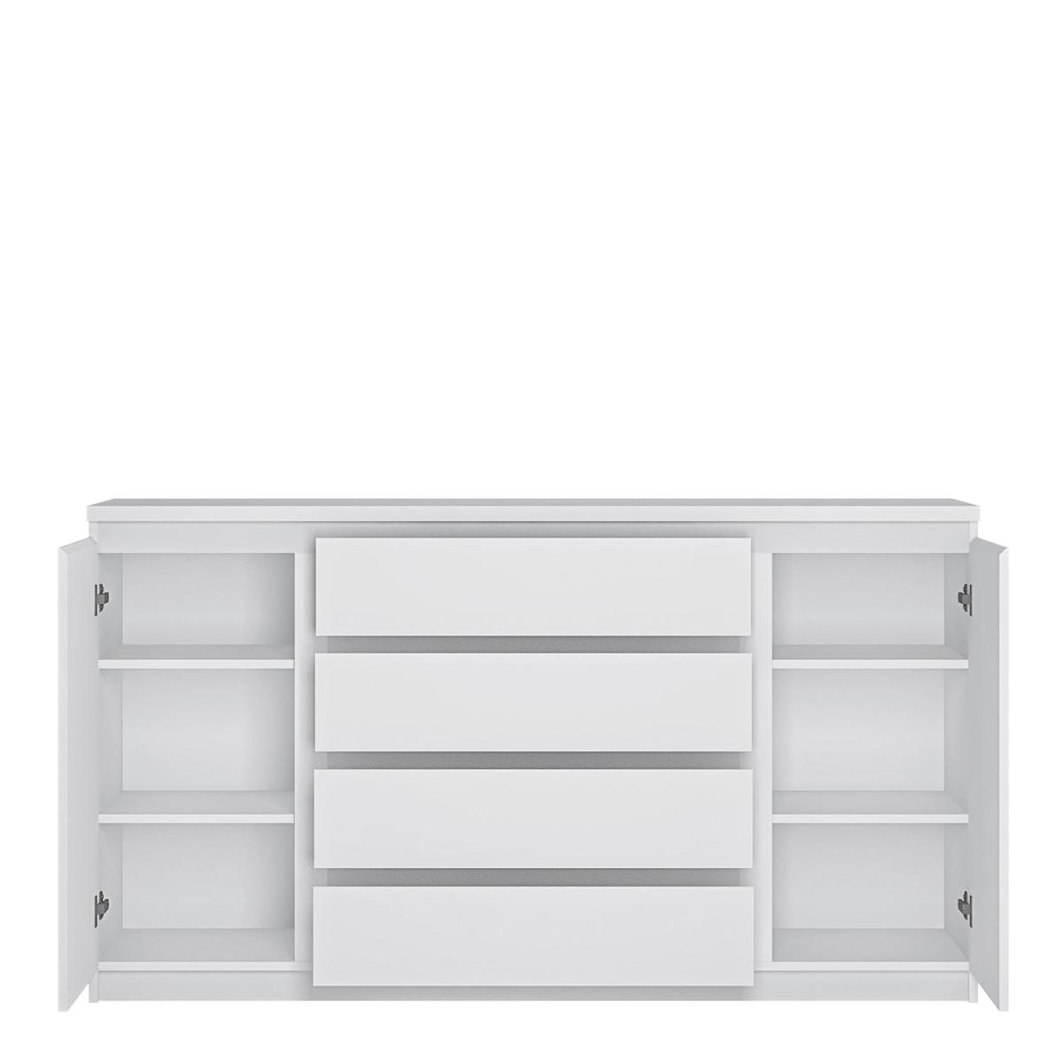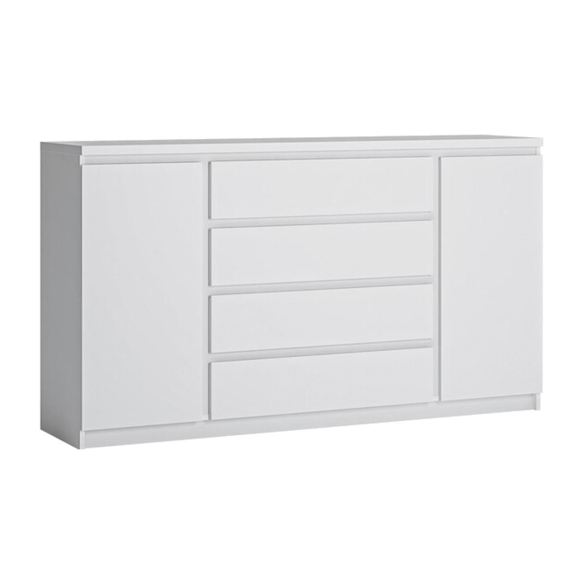 The Fribo 2-Door 4-Drawer Wide Sideboard from the Fribo collection is a piece of furniture for people who value functionality combined with an interesting design. Its design is well thought out, allowing you to store many things on the four spacious drawers and shelves inside the unit. The tabletop can be used to display your favourite accessories or to store small items in decorative boxes. The cabinet from the Fribo collection is equipped with a modern handle-free system, which increases the convenience of using the furniture, and full extension guides that allow the drawer to be pulled out to the very end.