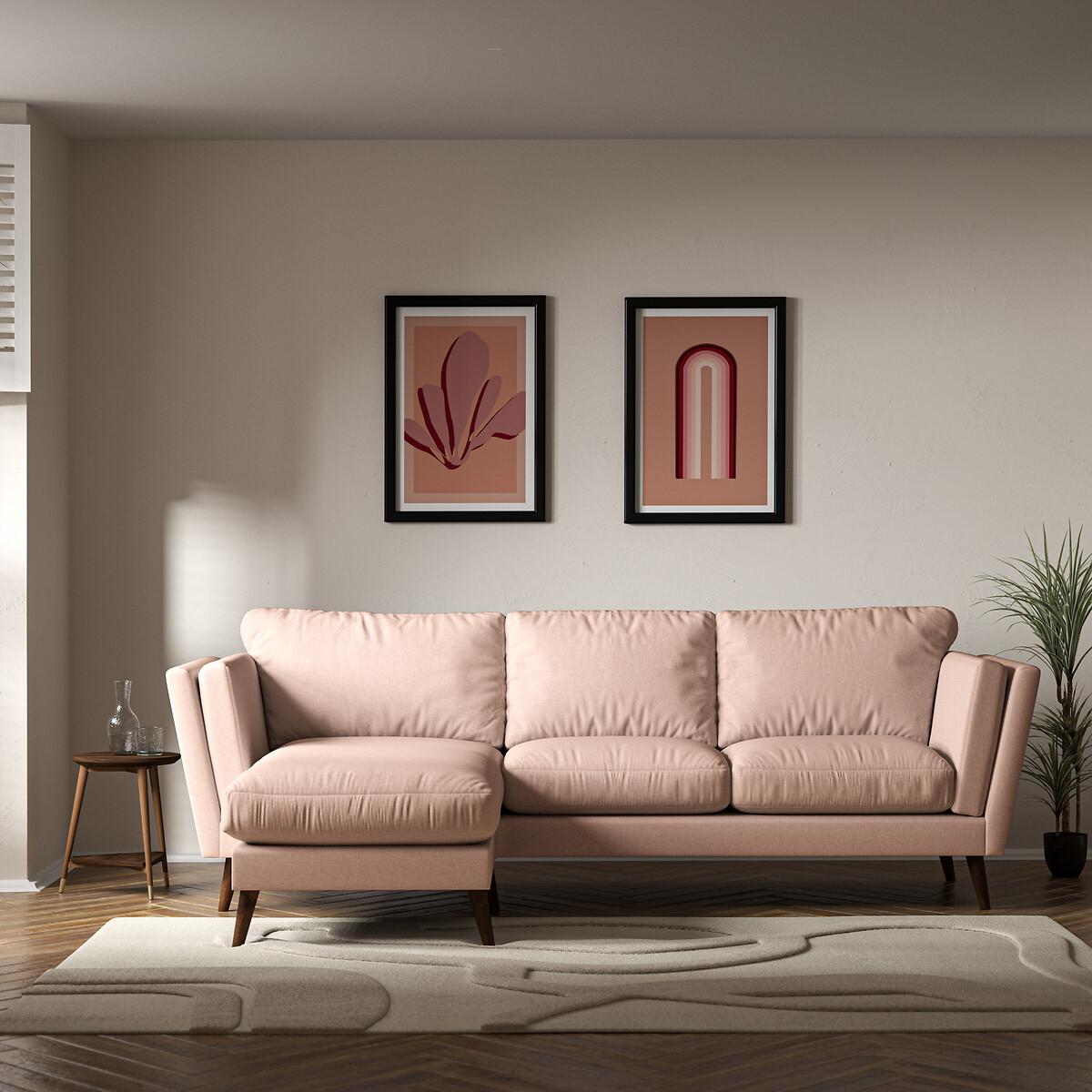 Curl up and cocoon with the beautifully designed Frida. Taking inspiration from ‘60s lounging, the Frida has a high architectural back and extra padding on the arms. Stretch out on the chaise corner and sink into squishy feathery cushions - perfect for cosy afternoon naps. Add some tapered wood legs and you have the very essence of vintage modern, and an easy way to add style to a midecntury inspired living room. Choose from our soft brushed fabric for ultimate cosiness or velvet for luxe living. A right hand sofa is also available, as well as a 2 seater, 3 seater and matching armchair. Product details• Soft Brushed - A cosy and practical flat woven fabric featuring a subtle brushed handle for a superbly snuggly seat. Check it's right for you - order a FREE swatch above.• Created with medium density foam fillings for a sofa with a level of comfort suitable for most. • Luxury seating cushions made from a blend of foam, feather and fibres offer the best of both words. A foam core with a feather wrap gives the cushion increased resilience and support without compromising on comfort, whilst fibre fillings add softness and body. Feather fillings allow air to circulate better, whilst being great at retaining heat in colder months. • Fibre backs provide extra softness and give you that "sink in" feeling.• Just flip to freshen up - the back cushions are fully finished both sides and reversible so it's easy to keep your sofa looking its best. Seat cushions are not reversible but are removable. • Both seat and back covers are removable (zip fastening)• FSC® solid beech hardwood frame - made of wood from responsibly managed forests that provide environmental, social and economic benefits.• Tapered feet crafted entirely from solid wood ensure durability and stability.• Removable feet.• Lovingly handmade in the UK.All our made to order sofas are carefully manufactured in the UK.Each hardwood frame is dowelled, glued, and screwed before being paired with the finest fabrics and fillings. And it doesn't stop there - for customer peace of mind and safety, all frames and fabrics are rigorously examined, inspected, and tested to the highest standards. All filling material(s) and covering fabric(s) meet the requirements for resistance to cigarette and match ignition in the 1988 safety regulations. This sofa comes with a 3 year manufacturer warranty from date of delivery (subject to terms and conditions)Product composition• Fabric - Soft Brushed (100% polyester)• Seat fillings - foam/fibre/feather• Back Fillings - Fibre• Frame - Beech Hardwood (FSC), OSB (UK origin, FSC)• Feet - Solid Wood. Product Dimensions Overall width: 278 cm. Overall depth: 96/180 cm. Overall height: 95 cm. Seat height: 48 cm. Seat depth: 60 cm. Seat width between the arms: 245 cm Arm width (at highest point): 8 cm excluding cushioned part, 20 cm including cushioned part. Back height (from base): 75 cm. Back height (from seat): 46 cm. Arm height (from floor): 80 cm. Arm height (from seat): 40 cm Clearance to floor (leg height): 20 cm. Please remember to measure your available space before ordering to be sure your sofa will fit. Don't forget to measure accessways and corners, and consider any obstacles. Package DimensionsL22. 1 cm x W151 cm x H96 cm, Weight 86 kg. This product will be dispatched by one of our trusted suppliers. You’ll be contacted by their selected courier about your delivery. Your product will be delivered to your room of choice. Feet may be assembled on arrival. BELFI01