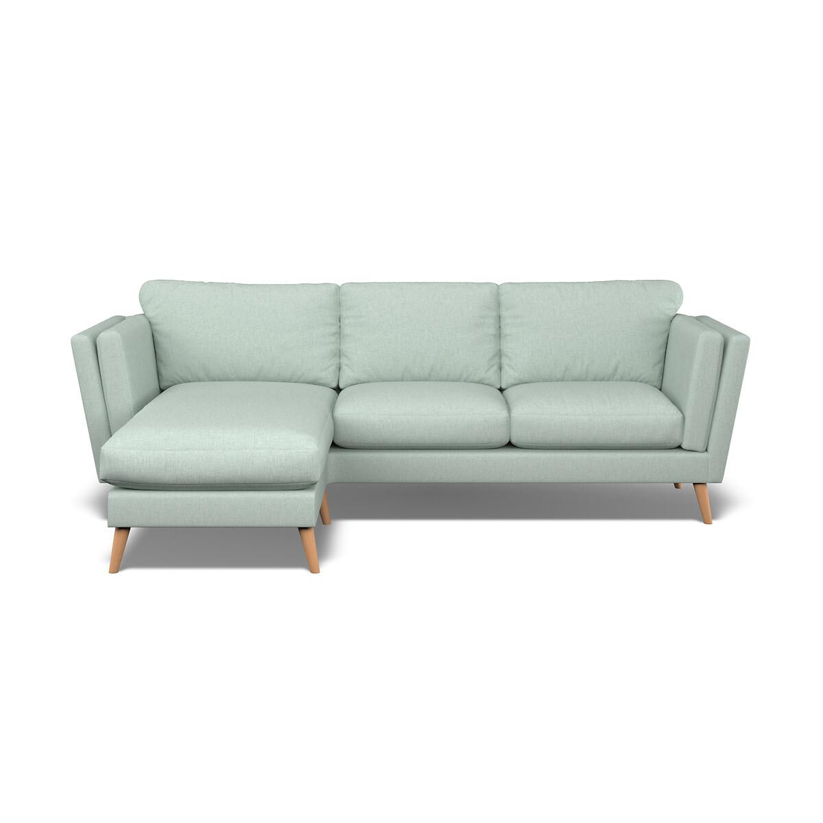 Frida Contemporary Soft Brushed Corner Chaise Feather Sofa- Left facing with Light Wood Legs