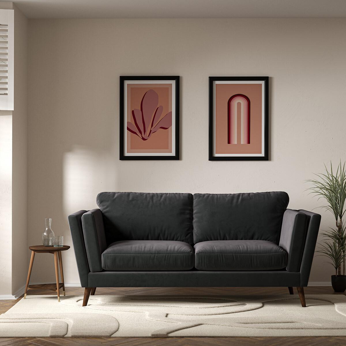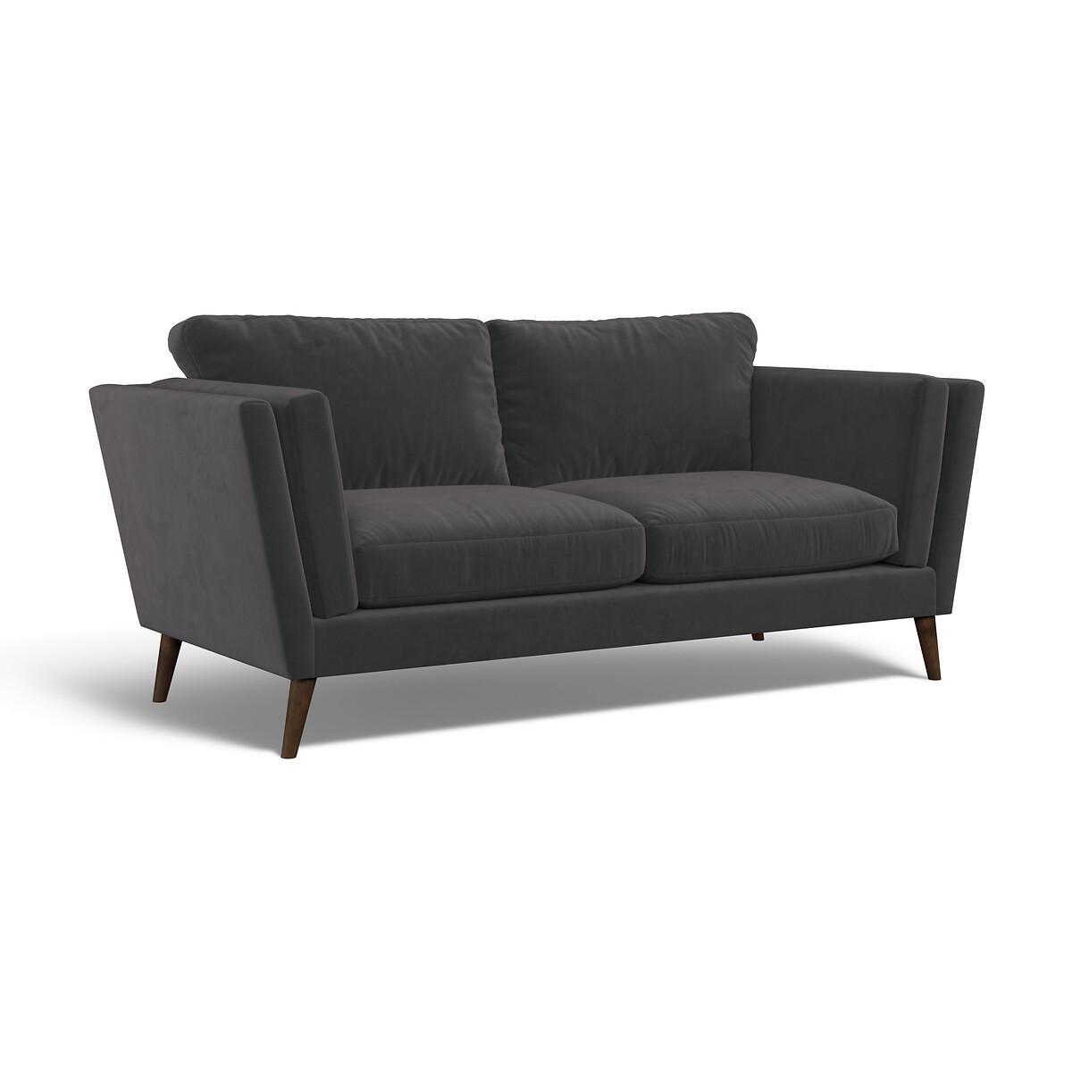 Curl up and cocoon with the beautifully designed Frida. Taking inspiration from ‘60s lounging, the Frida has a high architectural back and extra padding on the arms. Squishy feathery cushions are perfect for cosy afternoon naps. Add some tapered wood legs and you have the very essence of vintage modern, and an easy way to add style to a midecntury inspired living room. Choose from our soft brushed fabric for ultimate cosiness or velvet for luxe living. The Frida is available as a 2 seater, 3 seater or corner chaise, matching armchair also available. Product details• Velvet - An elegant velvet with a dense and matte finish, perfect for those wanting a rich and luxurious look. A flat finish pile makes it difficult for the material to snag – ideal if you live with pets and sure to prove durable for years to come. Check it's right for you - order a FREE swatch above.• Created with medium density foam fillings for a sofa with a level of comfort suitable for most. • Luxury seating cushions made from a blend of foam, feather and fibres offer the best of both words. A foam core with a feather wrap gives the cushion increased resilience and support without compromising on comfort, whilst fibre fillings add softness and body. Feather fillings allow air to circulate better, whilst being great at retaining heat in colder months. • Fibre backs provide extra softness and give you that "sink in" feeling.• Just flip to freshen up - the back cushions are fully finished both sides and reversible so it's easy to keep your sofa looking its best. Seat cushions are not reversible but are removable. • Both seat and back covers are removable (zip fastening)• FSC® solid beech hardwood frame - made of wood from responsibly managed forests that provide environmental, social and economic benefits.• Tapered feet crafted entirely from solid wood ensure durability and stability.• Removable feet.• Lovingly handmade in the UK.All our made to order sofas are carefully manufactured in the UK.Each hardwood frame is dowelled, glued, and screwed before being paired with the finest fabrics and fillings. And it doesn't stop there - for customer peace of mind and safety, all frames and fabrics are rigorously examined, inspected, and tested to the highest standards. All filling material(s) and covering fabric(s) meet the requirements for resistance to cigarette and match ignition in the 1988 safety regulations. This sofa comes with a 3 year manufacturer warranty from date of delivery (subject to terms and conditions)Product composition• Fabric - Velvet (100% polyester)• Seat fillings - foam/fibre/feather• Back Fillings - Fibre• Frame - Beech Hardwood (FSC), OSB (UK origin, FSC)• Feet - Solid Wood. Product Dimensions Overall width: 210 cm. Overall depth: 96 cm. Overall height: 95 cm. Seat height: 48 cm. Seat depth: 60 cm. Seat width between the arms: 177 cm Arm width (at highest point): 8 cm excluding cushioned part, 20 cm including cushioned part. Back height (from base): 75 cm. Back height (from seat): 46 cm. Arm height (from floor): 80 cm. Arm height (from seat): 40 cm Clearance to floor (leg height): 20 cm. Please remember to measure your available space before ordering to be sure your sofa will fit. Don't forget to measure accessways and corners, and consider any obstacles. Package DimensionsL21. 1 cm x W97 cm x H96 cm, Weight 55 kg. This product will be dispatched by one of our trusted suppliers. You’ll be contacted by their selected courier about your delivery. Your product will be delivered to your room of choice. Feet may be assembled on arrival. BELFI01