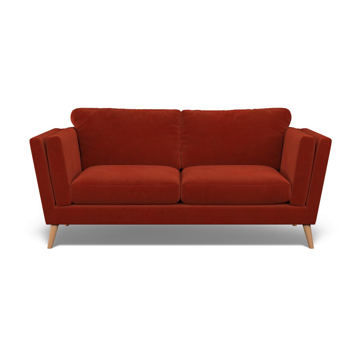 Curl up and cocoon with the beautifully designed Frida. Taking inspiration from ‘60s lounging, the Frida has a high architectural back and extra padding on the arms. Squishy feathery cushions are perfect for cosy afternoon naps. Add some tapered wood legs and you have the very essence of vintage modern, and an easy way to add style to a midecntury inspired living room. Choose from our soft brushed fabric for ultimate cosiness or velvet for luxe living. The Frida is available as a 2 seater, 3 seater or corner chaise, matching armchair also available. Product details• Velvet - An elegant velvet with a dense and matte finish, perfect for those wanting a rich and luxurious look. A flat finish pile makes it difficult for the material to snag – ideal if you live with pets and sure to prove durable for years to come. Check it's right for you - order a FREE swatch above.• Created with medium density foam fillings for a sofa with a level of comfort suitable for most. • Luxury seating cushions made from a blend of foam, feather and fibres offer the best of both words. A foam core with a feather wrap gives the cushion increased resilience and support without compromising on comfort, whilst fibre fillings add softness and body. Feather fillings allow air to circulate better, whilst being great at retaining heat in colder months. • Fibre backs provide extra softness and give you that "sink in" feeling.• Just flip to freshen up - the back cushions are fully finished both sides and reversible so it's easy to keep your sofa looking its best. Seat cushions are not reversible but are removable. • Both seat and back covers are removable (zip fastening)• FSC® solid beech hardwood frame - made of wood from responsibly managed forests that provide environmental, social and economic benefits.• Tapered feet crafted entirely from solid wood ensure durability and stability.• Removable feet.• Lovingly handmade in the UK.All our made to order sofas are carefully manufactured in the UK.Each hardwood frame is dowelled, glued, and screwed before being paired with the finest fabrics and fillings. And it doesn't stop there - for customer peace of mind and safety, all frames and fabrics are rigorously examined, inspected, and tested to the highest standards. All filling material(s) and covering fabric(s) meet the requirements for resistance to cigarette and match ignition in the 1988 safety regulations. This sofa comes with a 3 year manufacturer warranty from date of delivery (subject to terms and conditions)Product composition• Fabric - Velvet (100% polyester)• Seat fillings - foam/fibre/feather• Back Fillings - Fibre• Frame - Beech Hardwood (FSC), OSB (UK origin, FSC)• Feet - Solid Wood. Product Dimensions Overall width: 210 cm. Overall depth: 96 cm. Overall height: 95 cm. Seat height: 48 cm. Seat depth: 60 cm. Seat width between the arms: 177 cm Arm width (at highest point): 8 cm excluding cushioned part, 20 cm including cushioned part. Back height (from base): 75 cm. Back height (from seat): 46 cm. Arm height (from floor): 80 cm. Arm height (from seat): 40 cm Clearance to floor (leg height): 20 cm. Please remember to measure your available space before ordering to be sure your sofa will fit. Don't forget to measure accessways and corners, and consider any obstacles. Package DimensionsL21. 1 cm x W97 cm x H96 cm, Weight 55 kg. This product will be dispatched by one of our trusted suppliers. You’ll be contacted by their selected courier about your delivery. Your product will be delivered to your room of choice. Feet may be assembled on arrival. BELFI01