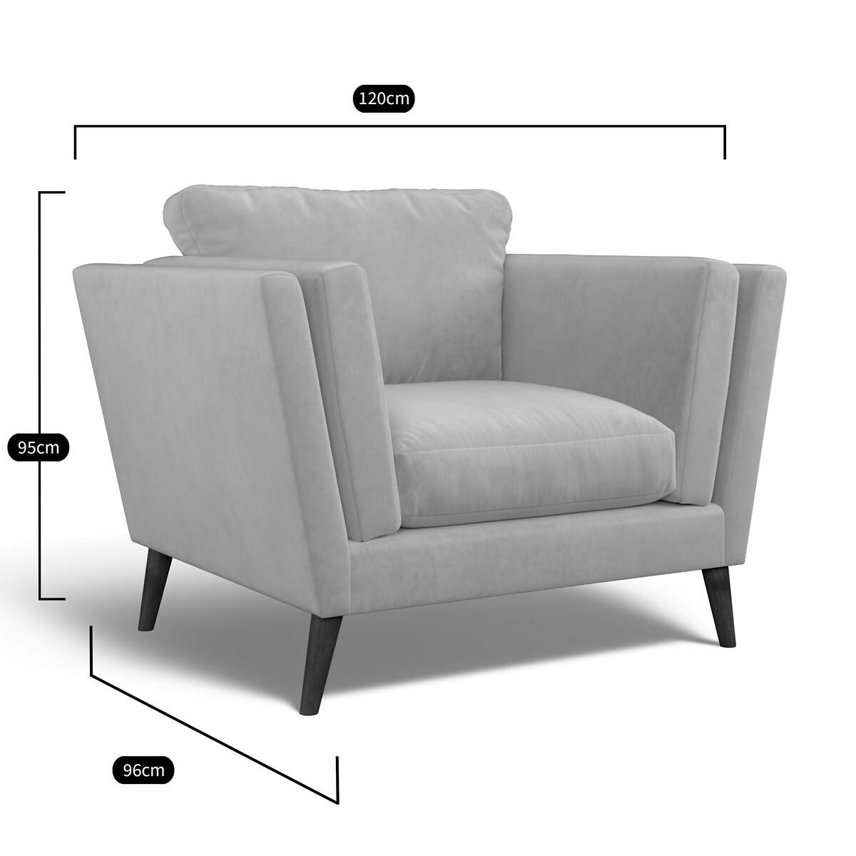 Curl up and cocoon with the beautifully designed Frida. Taking inspiration from ‘60s lounging, the Frida has a high architectural back and extra padding on the arms. Squishy feathery cushions are perfect for cosy afternoon naps. Add some tapered wood legs and you have the very essence of vintage modern, and an easy way to add style to a midecntury inspired living room. Choose from our soft brushed fabric for ultimate cosiness or velvet for luxe living. The Frida is also available as a 2 seater, 3 seater or corner chaise sofa. Product details• Velvet - An elegant velvet with a dense and matte finish, perfect for those wanting a rich and luxurious look. A flat finish pile makes it difficult for the material to snag – ideal if you live with pets and sure to prove durable for years to come. Check it's right for you - order a FREE swatch above.• Created with medium density foam fillings for a sofa with a level of comfort suitable for most. • Luxury seating cushions made from a blend of foam, feather and fibres offer the best of both words. A foam core with a feather wrap gives the cushion increased resilience and support without compromising on comfort, whilst fibre fillings add softness and body. Feather fillings allow air to circulate better, whilst being great at retaining heat in colder months. • Fibre backs provide extra softness and give you that "sink in" feeling.• Just flip to freshen up - the back cushions are fully finished both sides and reversible so it's easy to keep your sofa looking its best. Seat cushions are not reversible but are removable. • Both seat and back covers are removable (zip fastening)• FSC® solid beech hardwood frame - made of wood from responsibly managed forests that provide environmental, social and economic benefits.• Tapered feet crafted entirely from solid wood ensure durability and stability.• Removable feet.• Lovingly handmade in the UK.All our made to order sofas are carefully manufactured in the UK.Each hardwood frame is dowelled, glued, and screwed before being paired with the finest fabrics and fillings. And it doesn't stop there - for customer peace of mind and safety, all frames and fabrics are rigorously examined, inspected, and tested to the highest standards. All filling material(s) and covering fabric(s) meet the requirements for resistance to cigarette and match ignition in the 1988 safety regulations. This sofa comes with a 3 year manufacturer warranty from date of delivery (subject to terms and conditions)Product composition• Fabric - Velvet (100% polyester)• Seat fillings - foam/fibre/feather• Back Fillings - Fibre• Frame - Beech Hardwood (FSC), OSB (UK origin, FSC)• Feet - Solid Wood. Product Dimensions Overall width: 120 cm. Overall depth: 96 cm. Overall height: 95 cm. Seat height: 48 cm. Seat depth: 60 cm. Seat width between the arms: 87 cm Arm width (at highest point): 8 cm excluding cushioned part, 20 cm including cushioned part. Back height (from base): 75 cm. Back height (from seat): 46 cm. Arm height (from floor): 80 cm. Arm height (from seat): 40 cm Clearance to floor (leg height): 20 cm. Please remember to measure your available space before ordering to be sure your sofa will fit. Don't forget to measure accessways and corners, and consider any obstacles. Package DimensionsL12. 1 cm x W97 cm x H96 cm, Weight 37.5 kg. This product will be dispatched by one of our trusted suppliers. You’ll be contacted by their selected courier about your delivery. Your product will be delivered to your room of choice. Feet may be assembled on arrival. BELFI01
