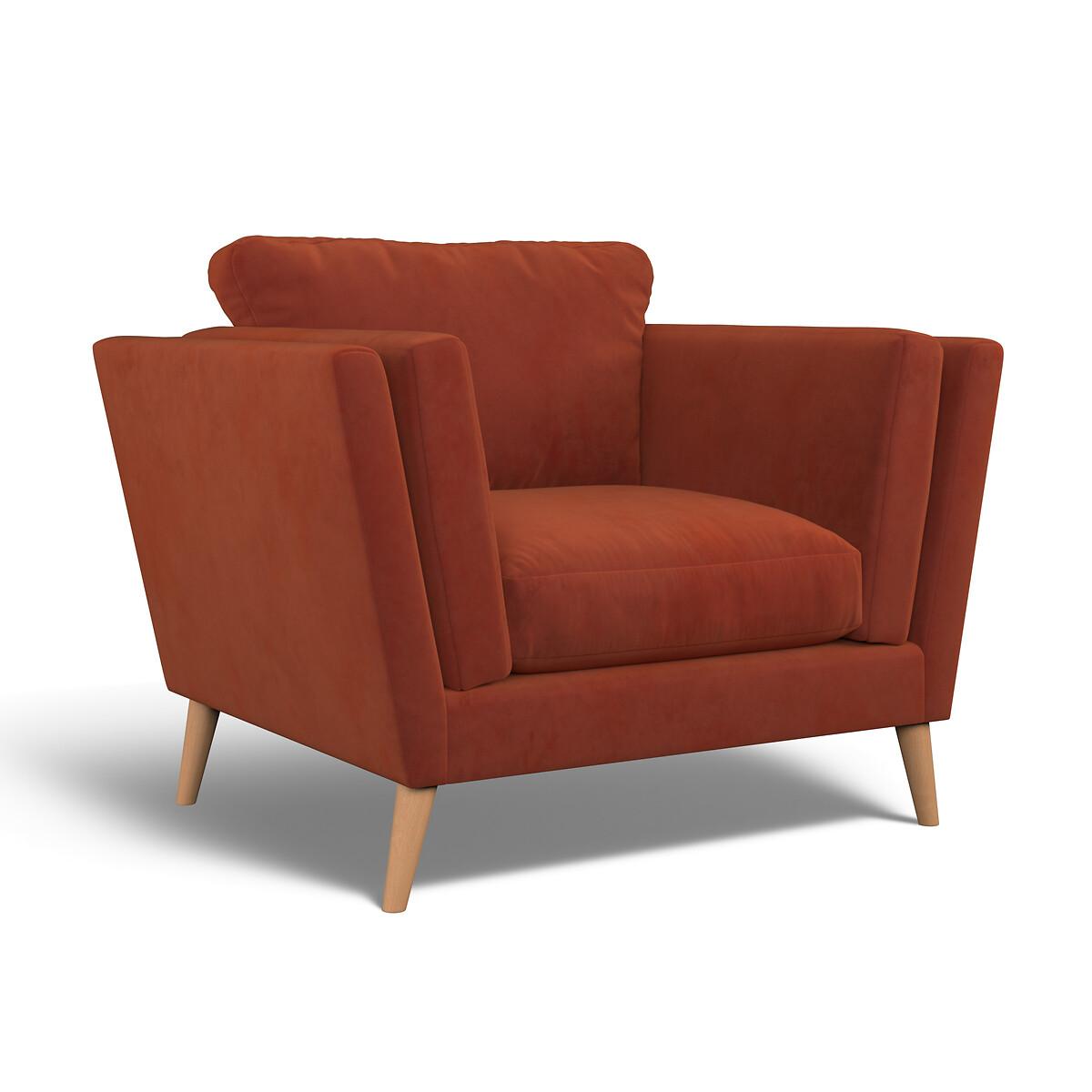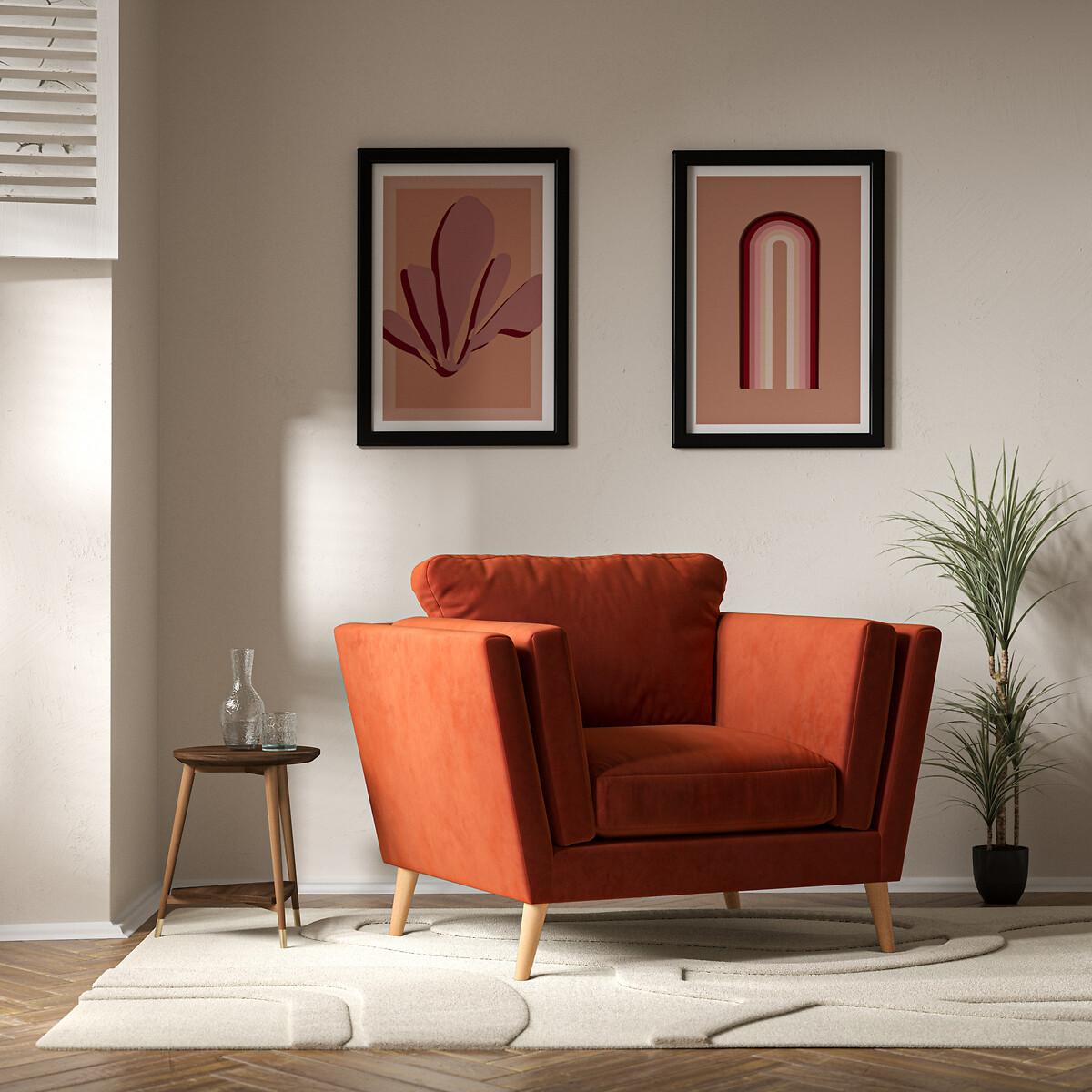 Curl up and cocoon with the beautifully designed Frida. Taking inspiration from ‘60s lounging, the Frida has a high architectural back and extra padding on the arms. Squishy feathery cushions are perfect for cosy afternoon naps. Add some tapered wood legs and you have the very essence of vintage modern, and an easy way to add style to a midecntury inspired living room. Choose from our soft brushed fabric for ultimate cosiness or velvet for luxe living. The Frida is also available as a 2 seater, 3 seater or corner chaise sofa. Product details• Velvet - An elegant velvet with a dense and matte finish, perfect for those wanting a rich and luxurious look. A flat finish pile makes it difficult for the material to snag – ideal if you live with pets and sure to prove durable for years to come. Check it's right for you - order a FREE swatch above.• Created with medium density foam fillings for a sofa with a level of comfort suitable for most. • Luxury seating cushions made from a blend of foam, feather and fibres offer the best of both words. A foam core with a feather wrap gives the cushion increased resilience and support without compromising on comfort, whilst fibre fillings add softness and body. Feather fillings allow air to circulate better, whilst being great at retaining heat in colder months. • Fibre backs provide extra softness and give you that "sink in" feeling.• Just flip to freshen up - the back cushions are fully finished both sides and reversible so it's easy to keep your sofa looking its best. Seat cushions are not reversible but are removable. • Both seat and back covers are removable (zip fastening)• FSC® solid beech hardwood frame - made of wood from responsibly managed forests that provide environmental, social and economic benefits.• Tapered feet crafted entirely from solid wood ensure durability and stability.• Removable feet.• Lovingly handmade in the UK.All our made to order sofas are carefully manufactured in the UK.Each hardwood frame is dowelled, glued, and screwed before being paired with the finest fabrics and fillings. And it doesn't stop there - for customer peace of mind and safety, all frames and fabrics are rigorously examined, inspected, and tested to the highest standards. All filling material(s) and covering fabric(s) meet the requirements for resistance to cigarette and match ignition in the 1988 safety regulations. This sofa comes with a 3 year manufacturer warranty from date of delivery (subject to terms and conditions)Product composition• Fabric - Velvet (100% polyester)• Seat fillings - foam/fibre/feather• Back Fillings - Fibre• Frame - Beech Hardwood (FSC), OSB (UK origin, FSC)• Feet - Solid Wood. Product Dimensions Overall width: 120 cm. Overall depth: 96 cm. Overall height: 95 cm. Seat height: 48 cm. Seat depth: 60 cm. Seat width between the arms: 87 cm Arm width (at highest point): 8 cm excluding cushioned part, 20 cm including cushioned part. Back height (from base): 75 cm. Back height (from seat): 46 cm. Arm height (from floor): 80 cm. Arm height (from seat): 40 cm Clearance to floor (leg height): 20 cm. Please remember to measure your available space before ordering to be sure your sofa will fit. Don't forget to measure accessways and corners, and consider any obstacles. Package DimensionsL12. 1 cm x W97 cm x H96 cm, Weight 37.5 kg. This product will be dispatched by one of our trusted suppliers. You’ll be contacted by their selected courier about your delivery. Your product will be delivered to your room of choice. Feet may be assembled on arrival. BELFI01