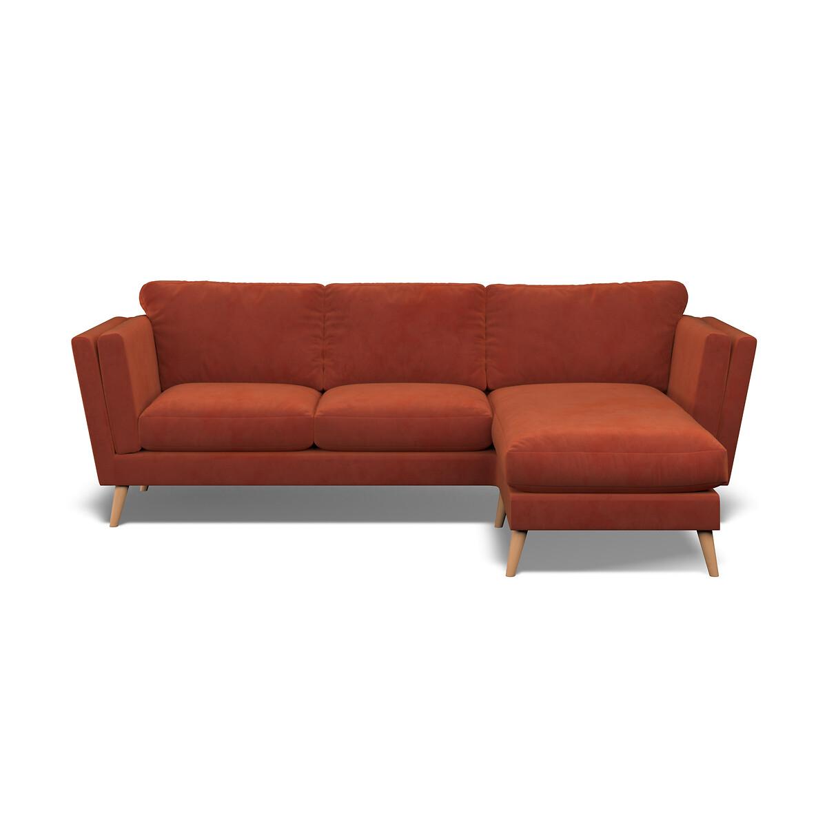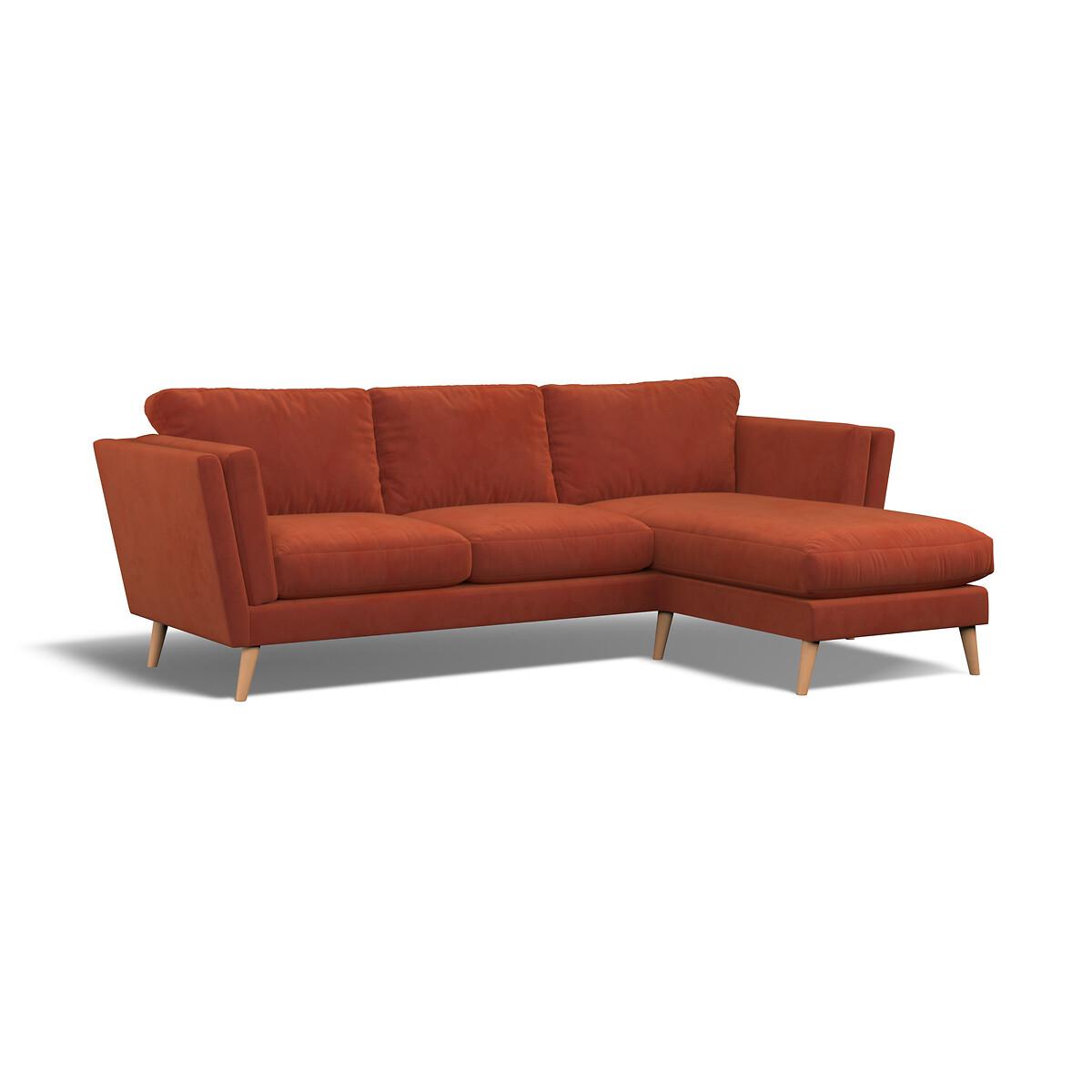 Frida Contemporary Velvet Corner Chaise Sofa - Right Facing with Light Wood Legs