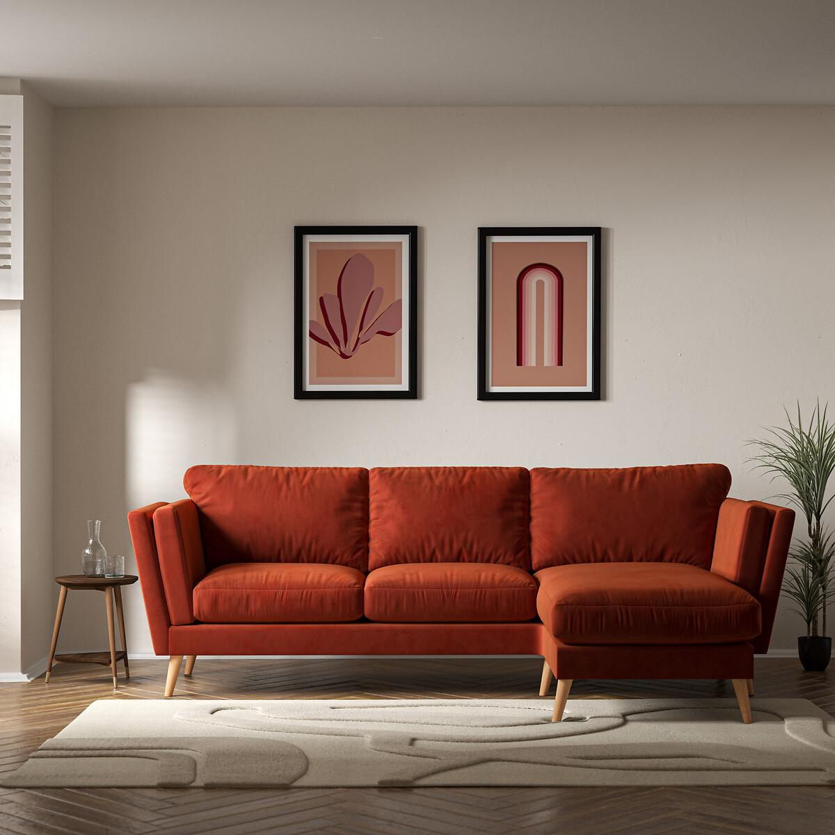 The Frida velvet corner sofa is a stylish choice that works well in both modern and eclectic interiors. Its rich velvet finish adds a touch of luxury, while the light wood legs bring warmth and a Scandinavian feel. I love its versatility, making it suitable for both cosy family rooms and more contemporary open-plan living spaces. To style it effectively, consider pairing it with neutral tones or bold accent cushions to enhance the sofa’s vibrant colour. Practical tips include using a low coffee table to keep the space open and adding a few textured throws for extra comfort. Its right-facing design is great for creating a cosy corner or defining a seating area, making it a practical yet stylish piece for many homes.