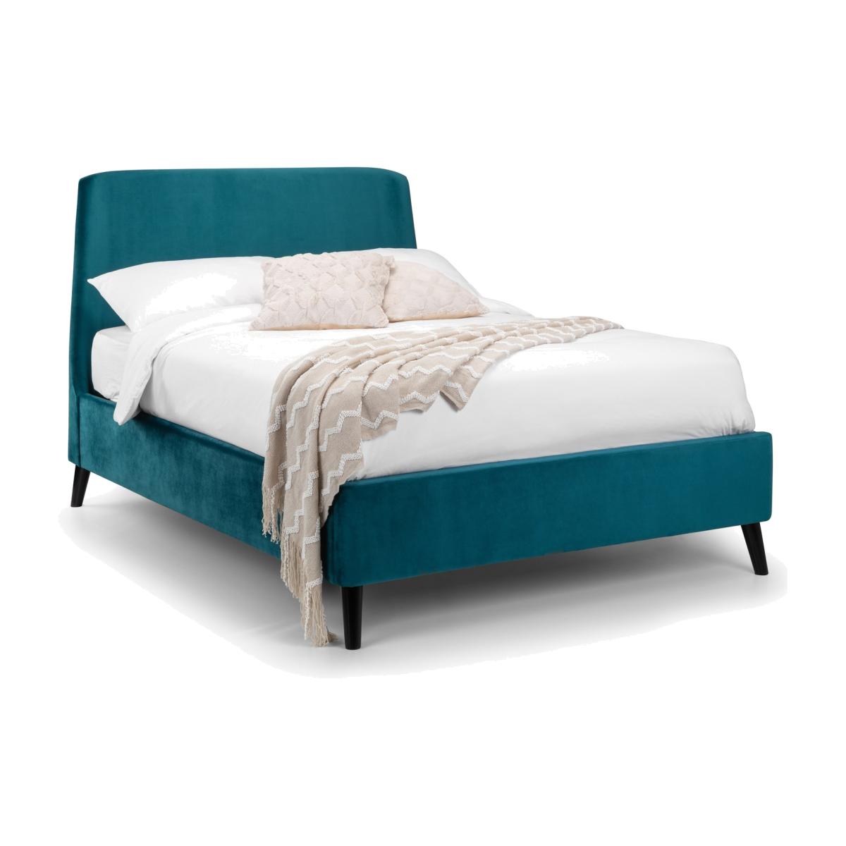 Featuring a gorgeous, curved headboard, the Frida bed exudes elegance and comfort. The black contrasting legs paired with the smooth velvet give a modern look and are likely to be the statement piece in any bedroom. It is also available in an ottoman version, perfect for those with smaller bedroom areas as it provides that extra storage space. Available in two beautiful shades of teal and grey.