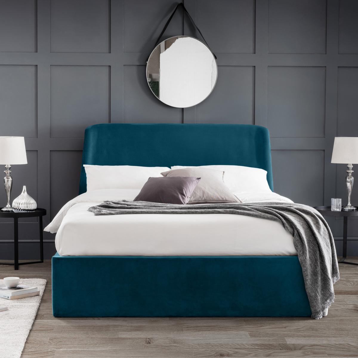 I’m a fan of this teal ottoman bed for its clean lines, velvet upholstery and clever under-bed storage - it’s equally at home in a modern city pad or a relaxed coastal retreat. The deep teal works especially well against soft greys or off-white walls, and adds a sophisticated pop when paired with brushed brass or matte black accents. For styling, keep bedding crisp and minimal - a white or pale grey linen set helps the colour sing - then layer in a couple of scatter cushions in complementary hues such as muted ochre or dusty rose. A simple geometric rug beneath the frame will anchor the look, while slimline bedside tables and a pair of matching lamps complete a balanced, uncluttered scheme.