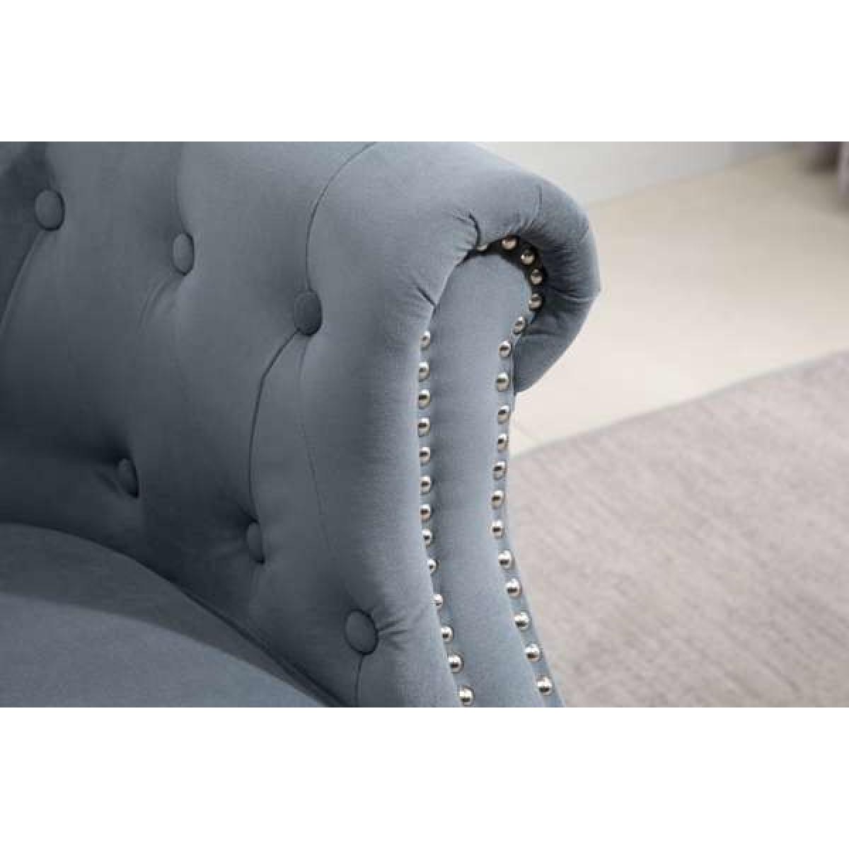 The Frieda chair mixes classic styling with modern shaping - perfectly. Traditional buttoning and rolled arms offer a nostalgic nod to the Chesterfield style, yet the contemporary curves and deep cushioning update the look beautifully. This chair will look striking in any room. Traditional buttoned back and rolled arms Expertly crafted wooden legs Choose from blue, green or grey Also available as an equally stunning sofa Easy self-assembly