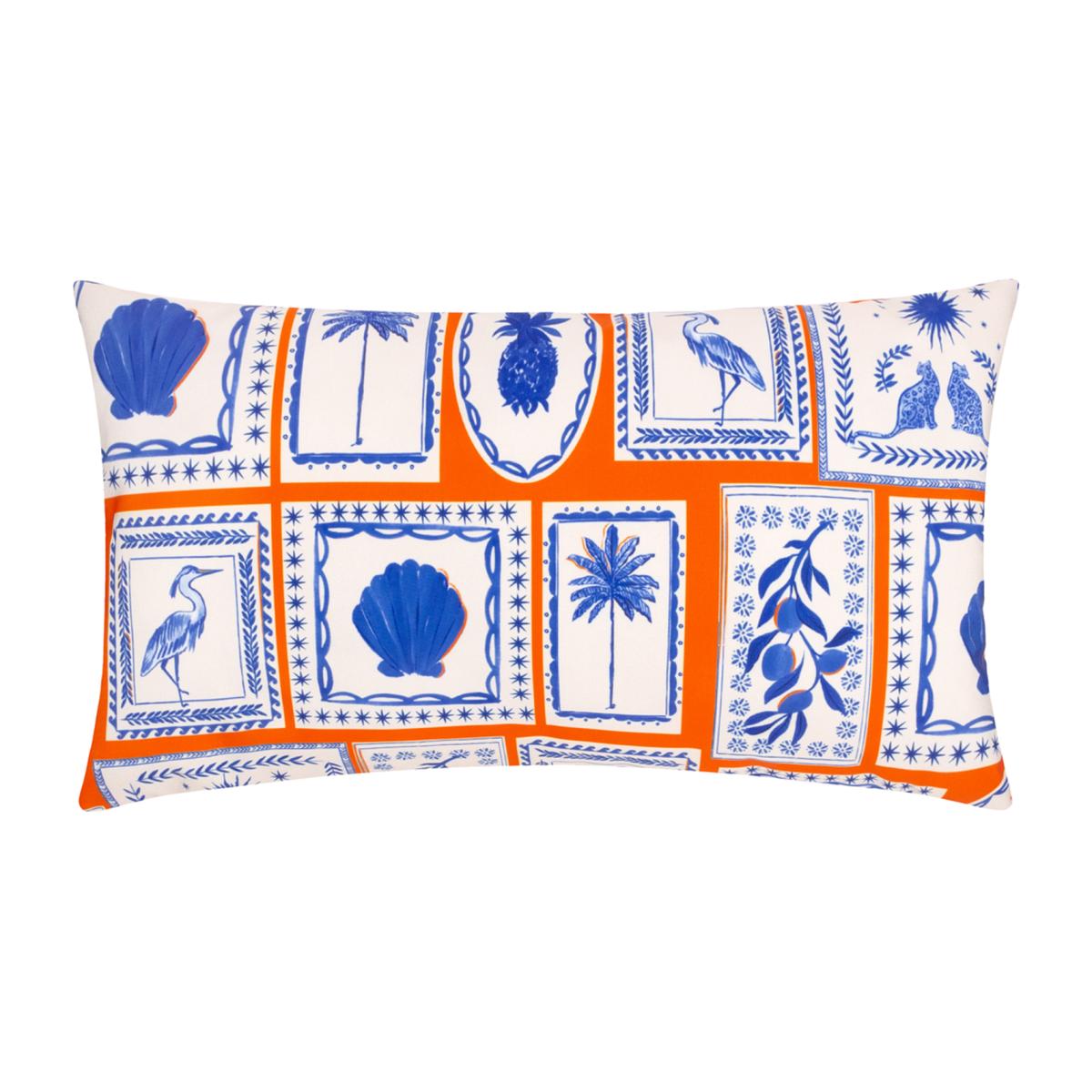 Imagine dipping your toes into the cobalt waters of the Aegean Sea, looking up to see perfect white villas dotted on the hillside, palms swaying in the breeze, and tiny shells washed up onto the crisp white sand. The Frieze outdoor cushion features a printed design of symbols and icons inspired by travels around the Greek islands. This beautiful and bright piece is perfect for adding to your alfresco dining or entertaining area in your outdoor setting.