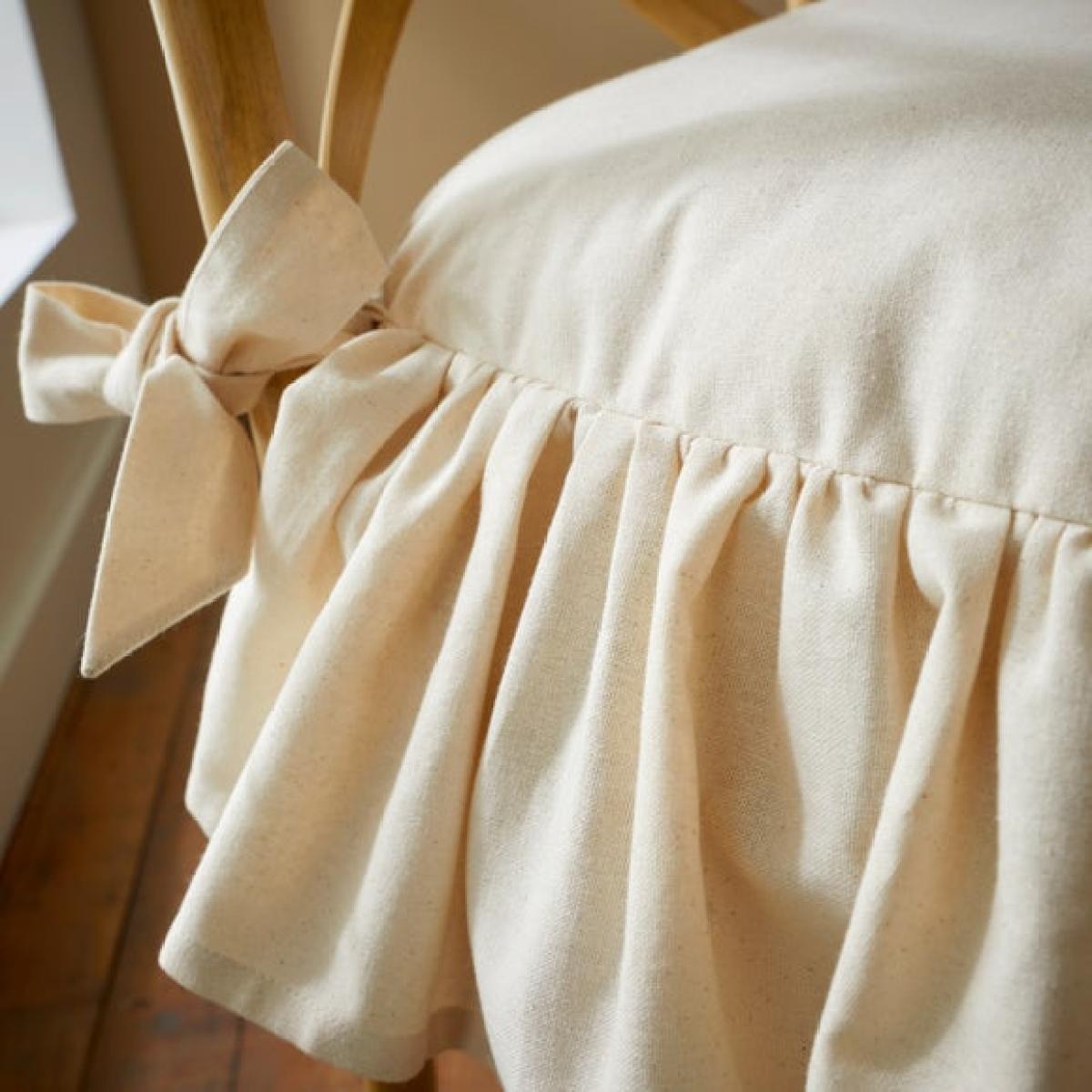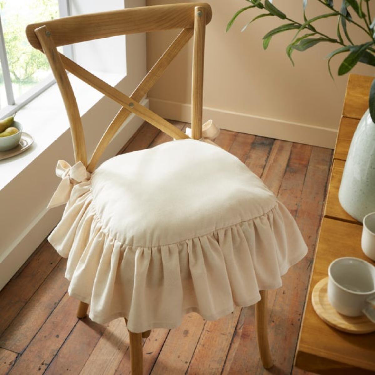 I love this chair seat pad for its versatile, timeless charm and practical comfort. Its classic frill detail adds a quaint, vintage touch, making it a lovely addition to country cottages, shabby chic interiors, or even more eclectic, cosy kitchens. It works well layered over wooden or painted chairs to soften the look and add a touch of femininity or vintage appeal. For styling tips, consider pairing it with floral prints or pastel shades to create a light, inviting atmosphere, or use it to bring a gentle focal point in more neutral, modern spaces. Its removable cover makes it easy to clean and update, making it both stylish and functional for everyday use.