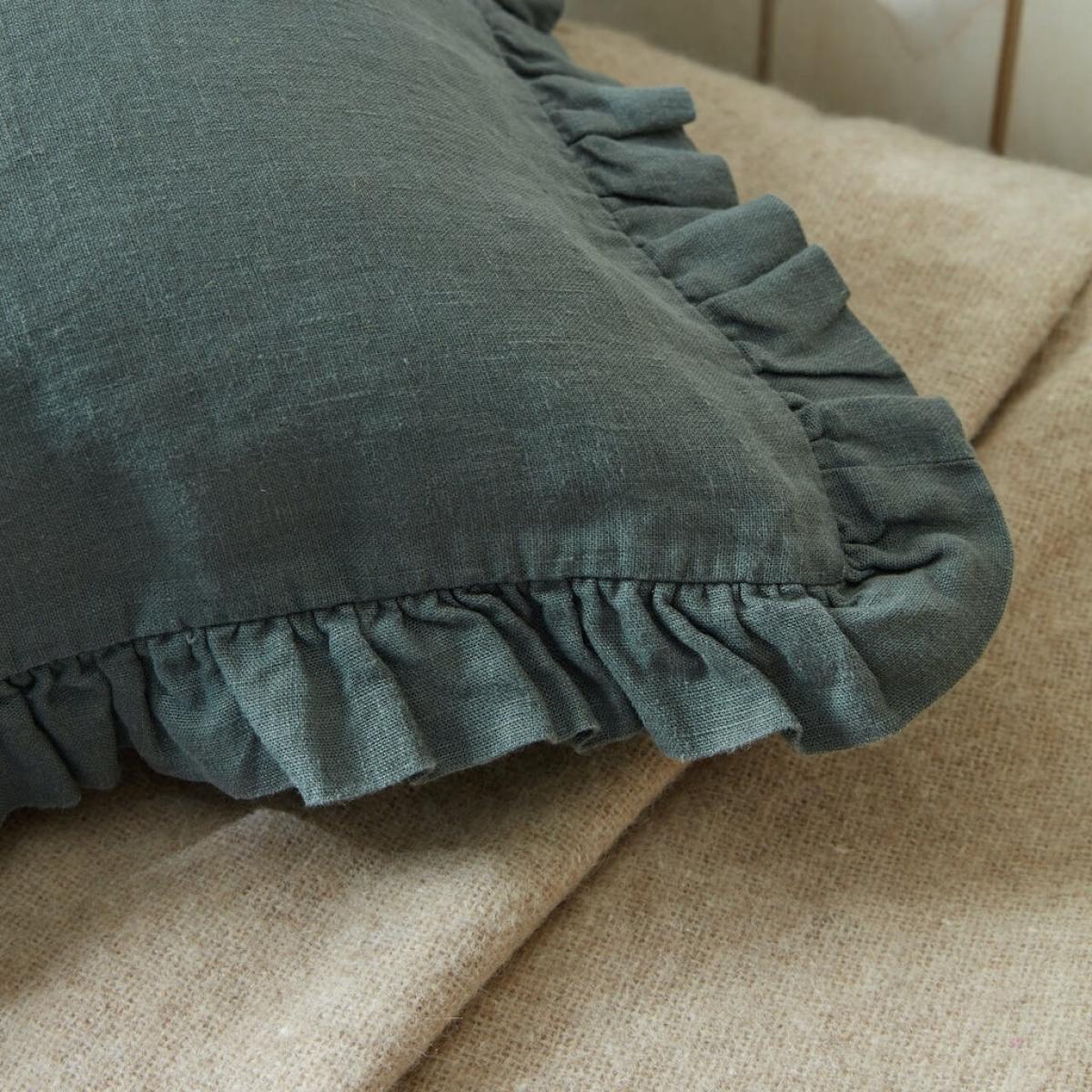 Frill Cushion Cover Forest Green