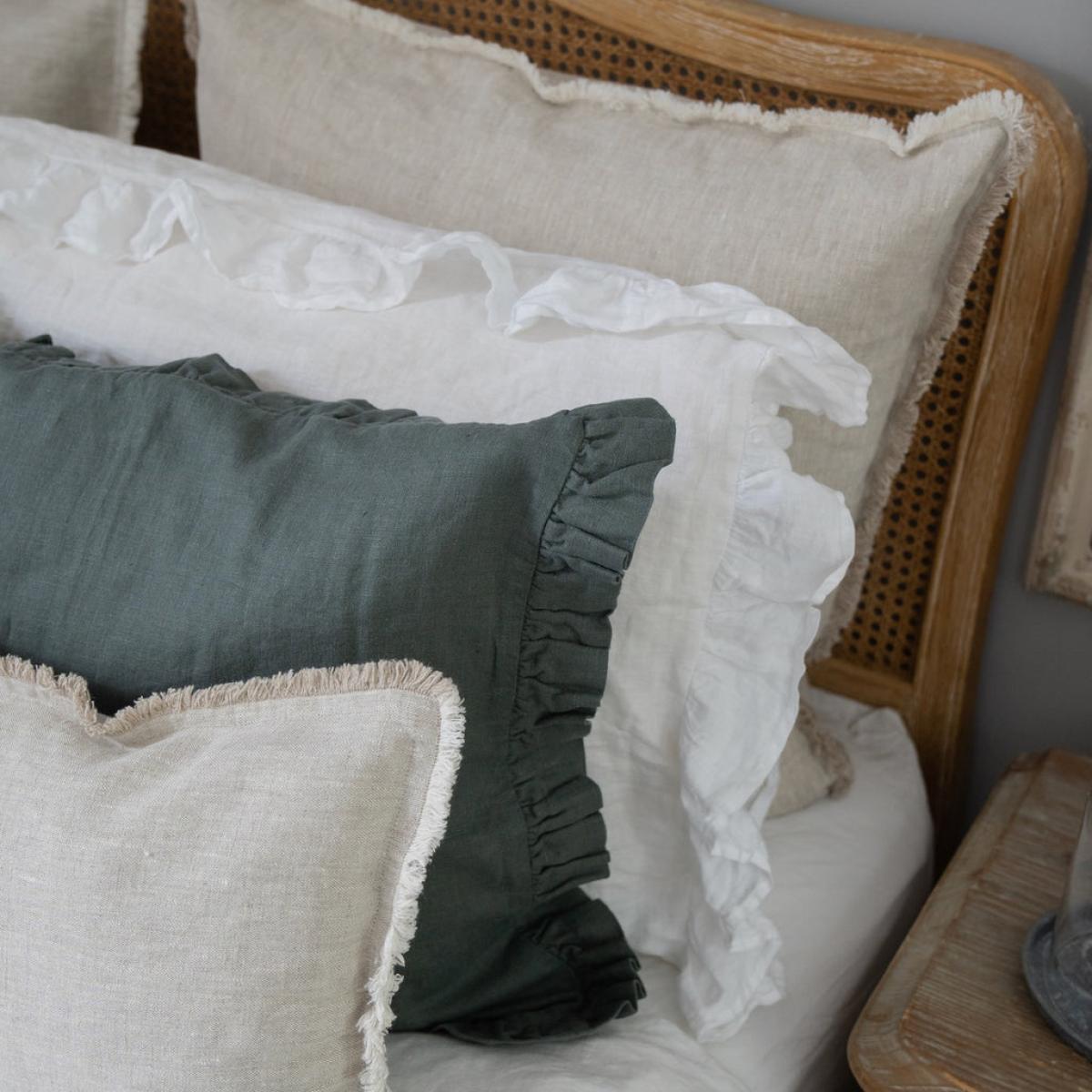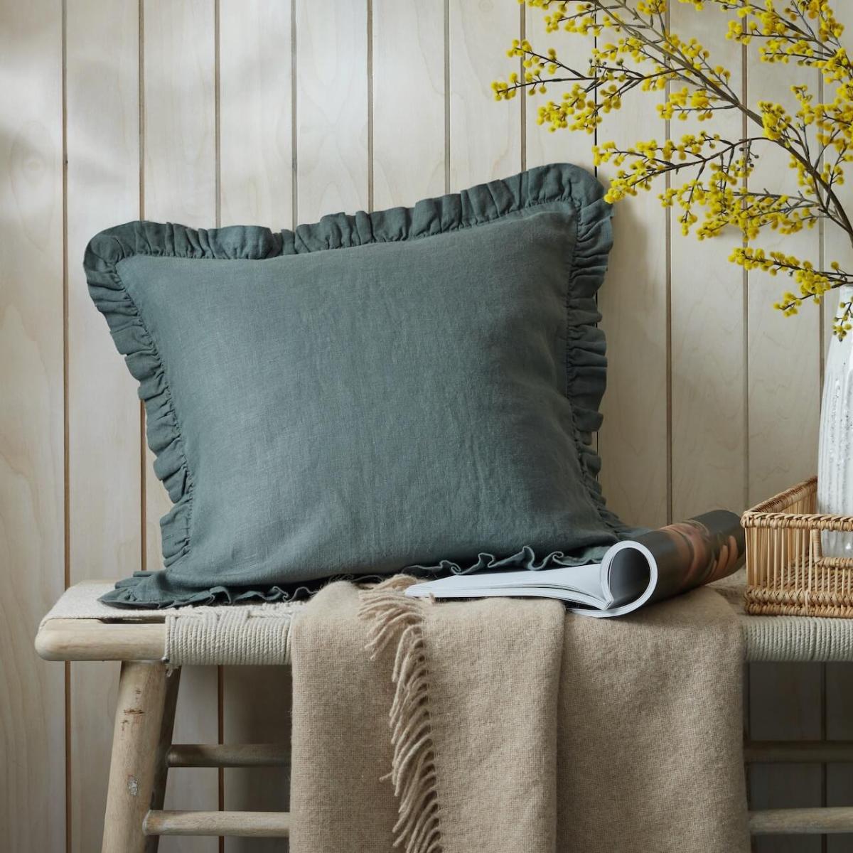 We love linen for its relaxed natural properties. A wonderful way to style your sofa or bed, the rich forest green cushions are finished with a fabulous quality frill for that informal yet on trend look. NOTE:Cover only, does not include filler
