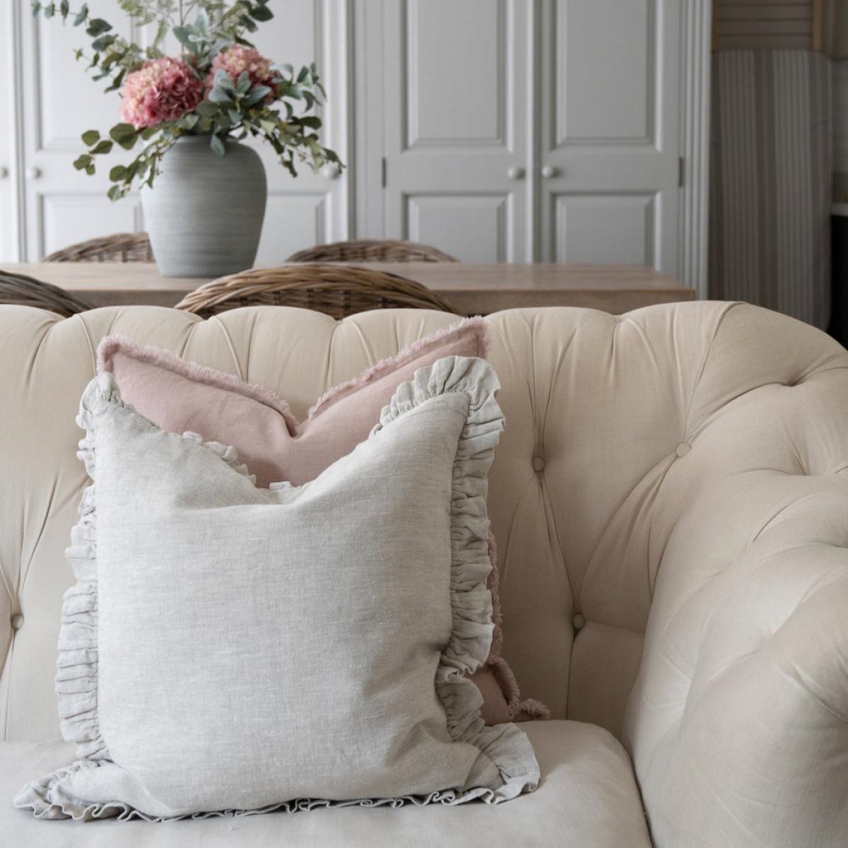 We love linen for its relaxed natural properties. A wonderful way to style your sofa or bed, the natural coloured cushions are finished with a fabulous quality frill for that informal yet on trend look. NOTE:Cover only, does not include filler