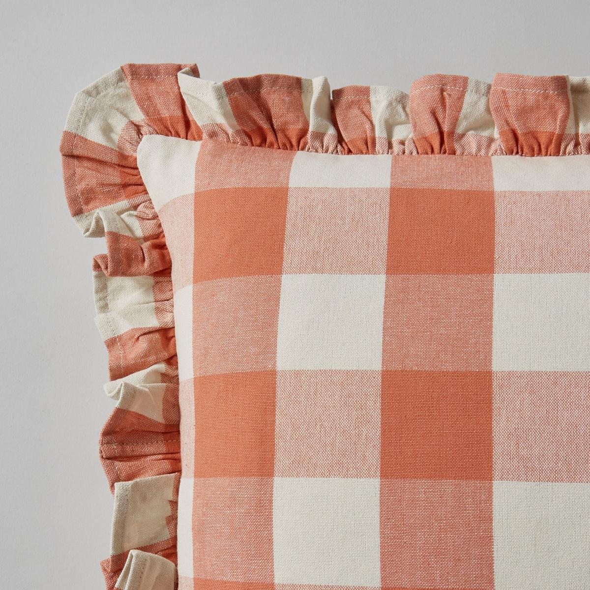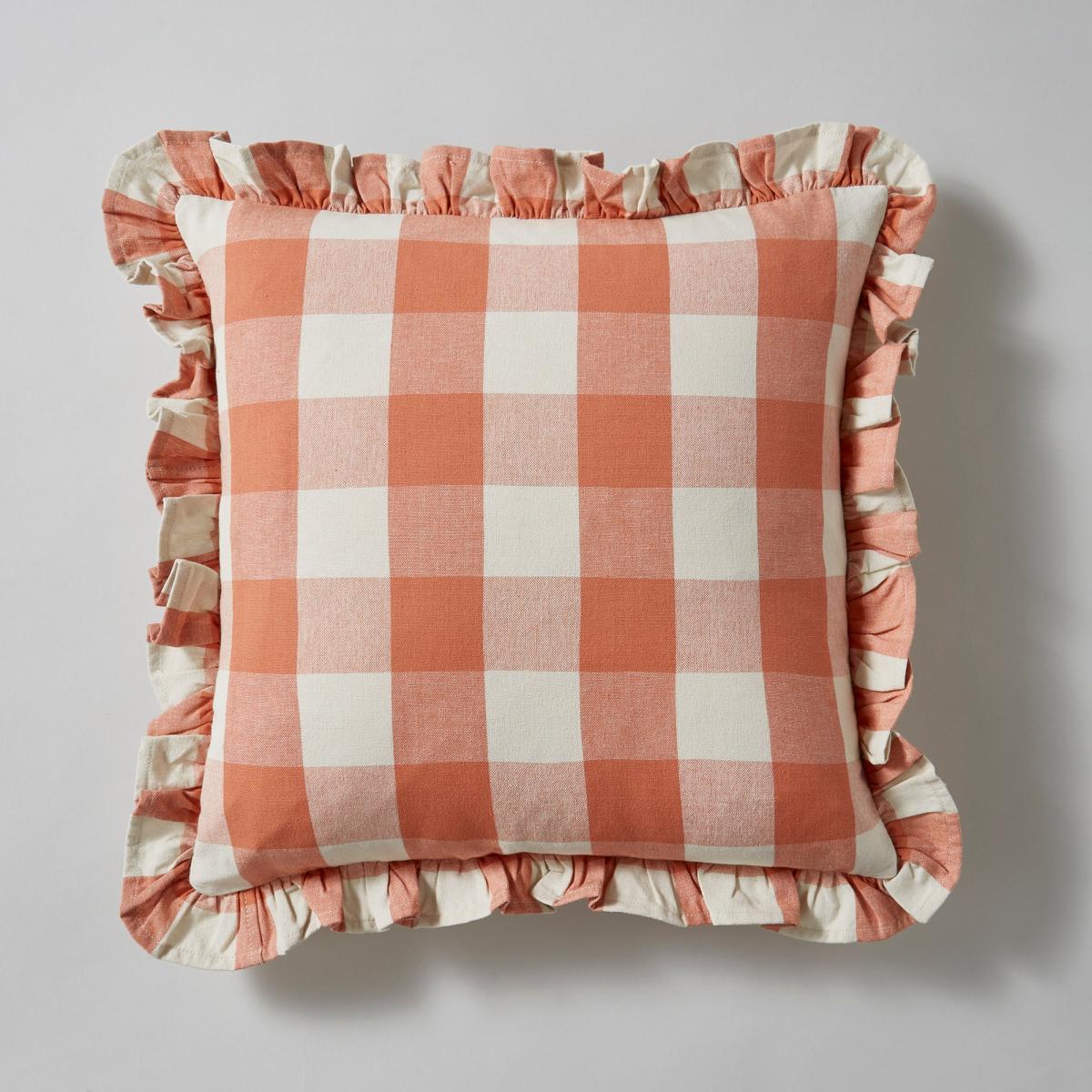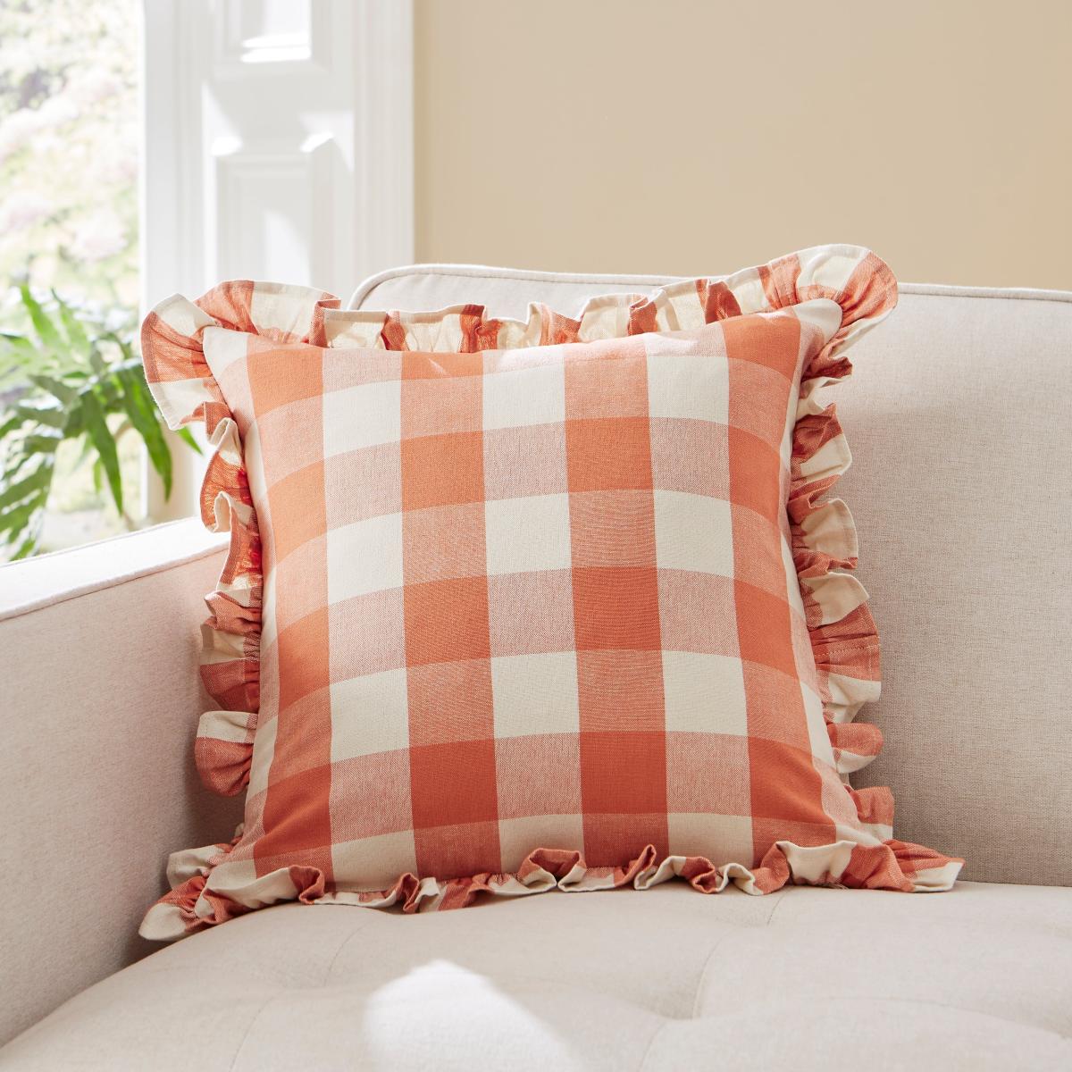 I love this check cushion for adding a cosy, country charm to both traditional and modern interiors. Its warm clay tones and playful ruffled edges bring a relaxed, inviting vibe to sofas or beds. It works particularly well layered with other textured cushions or throws in neutral and earthy palettes. Practical styling tips include pairing it with natural fibres like linen or jute for a laid-back look, and placing it where you want to create a focal point, such as a statement armchair or a corner of the bed. This cushion's cheerful check pattern also lends itself to cottagecore, farmhouse, or rustic schemes, making it versatile without feeling overly formal.