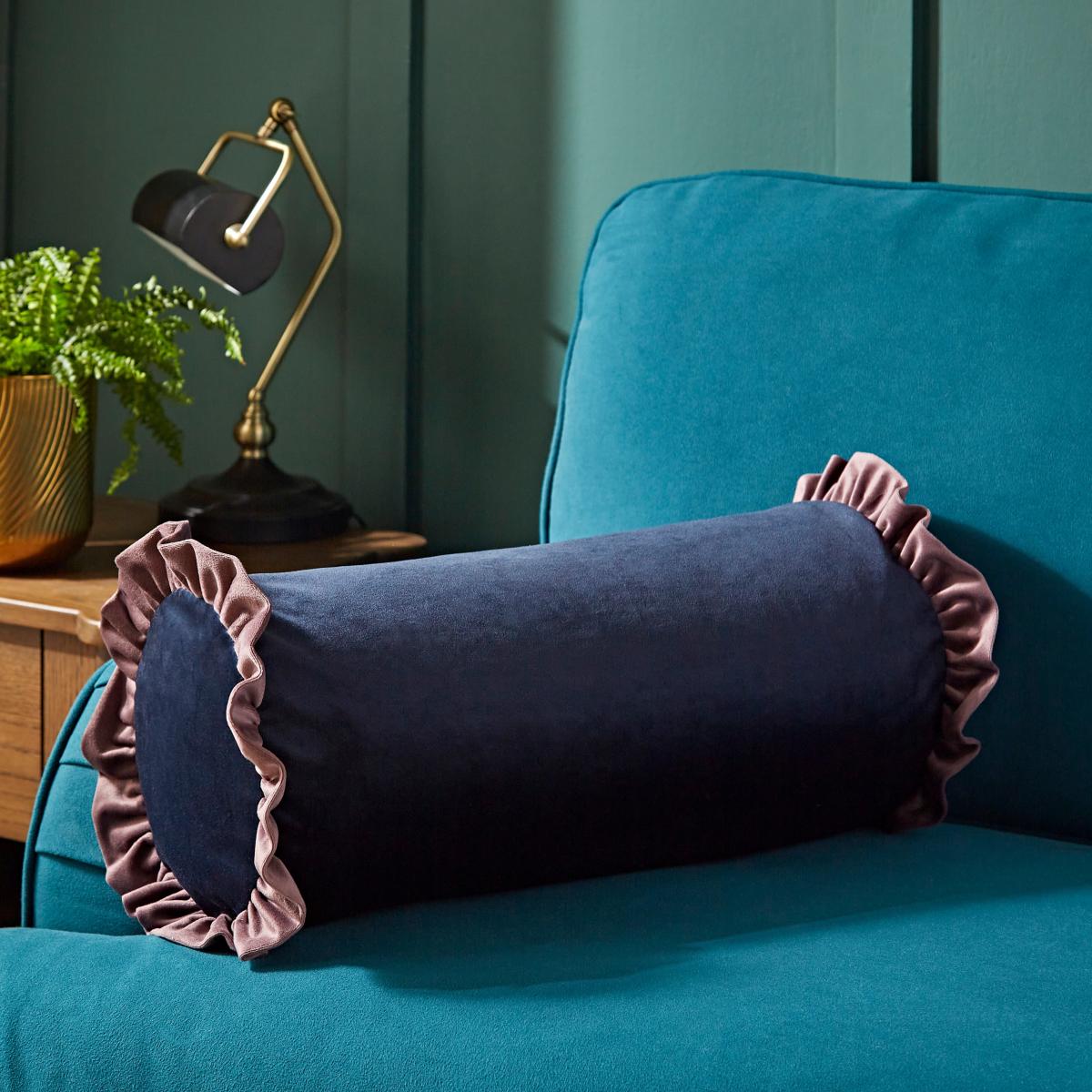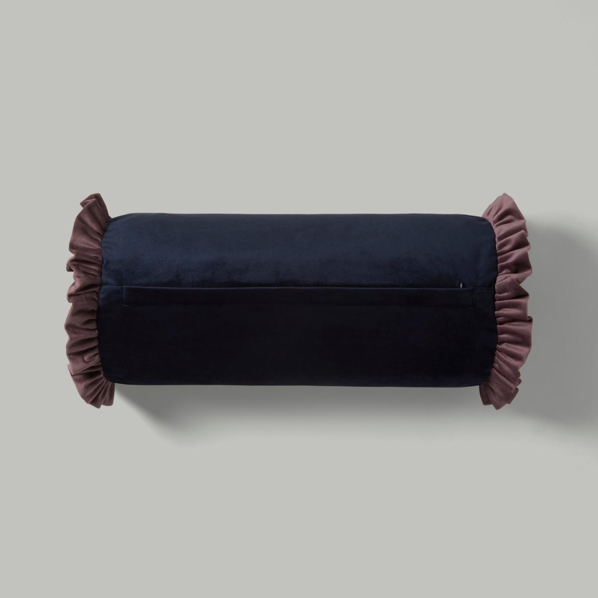 * Zip closure* Machine washable* Made from 100% recycled polyester Elevate your space with the Frilled Contrast Bolster Cushion. Made of luxurious recycled velour, this stylish cushion is both sustainable and soft. Complete your look with matching products for an effortlessly chic home.